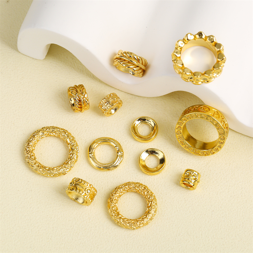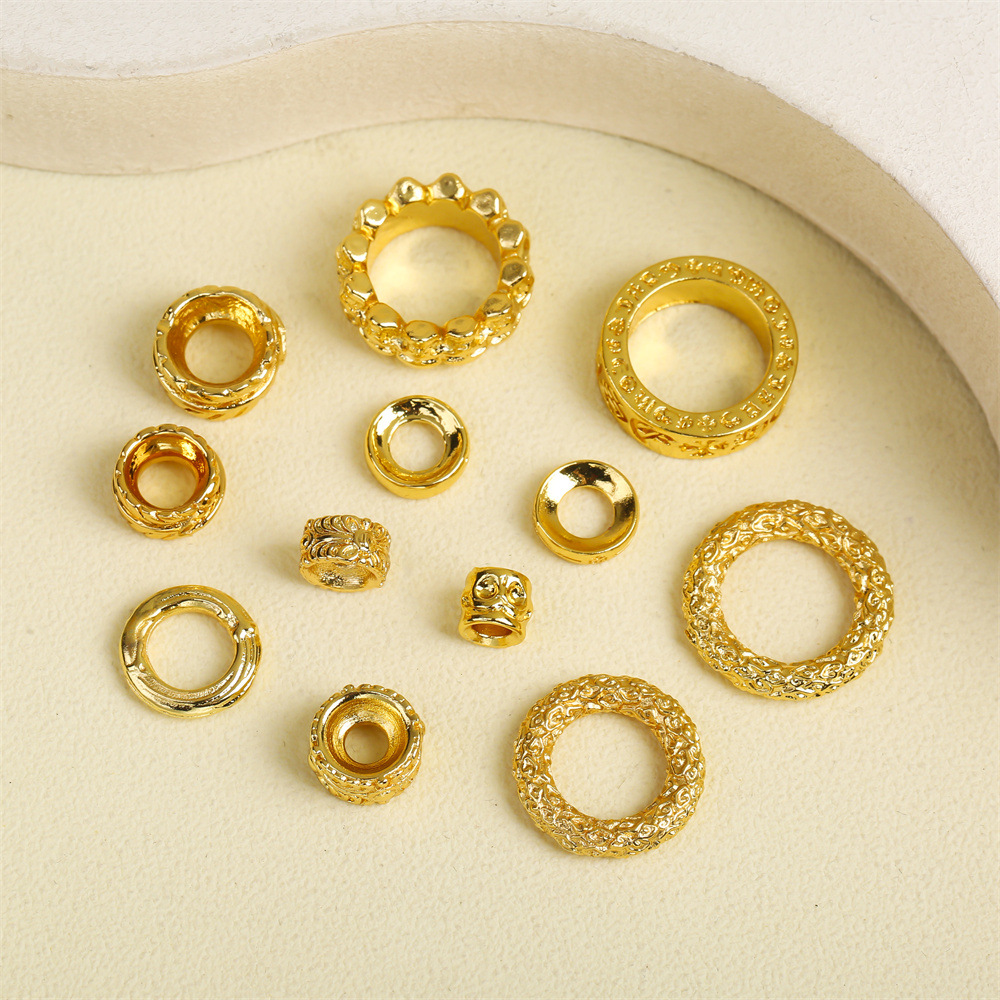 チベット風スナップリング、古代黄金スペーサー、唐草祥雲模様リング、長ブレスレットアクセサリー