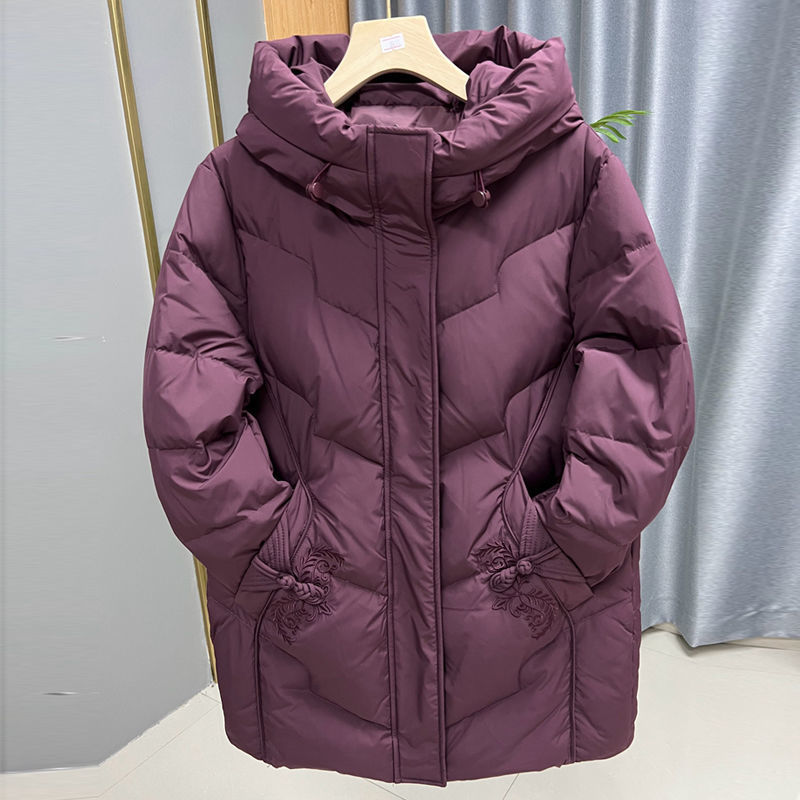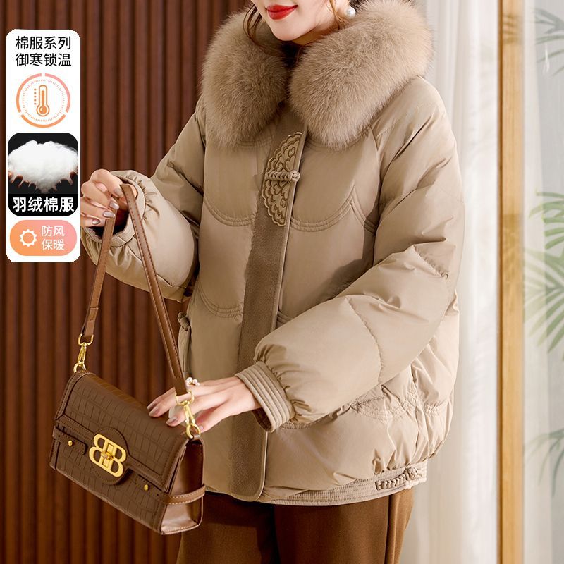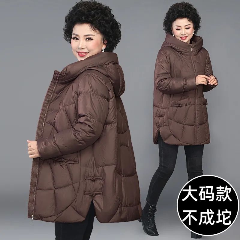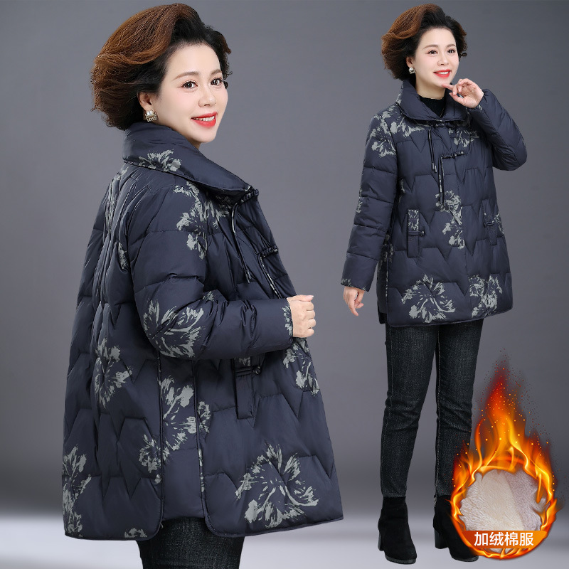 国风妈妈装2025冬装新款羽绒棉中长款洋气大码女士外套保暖中老年