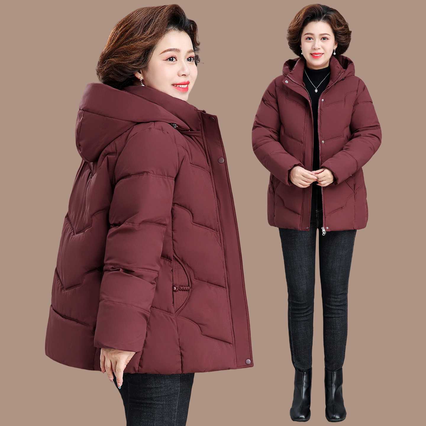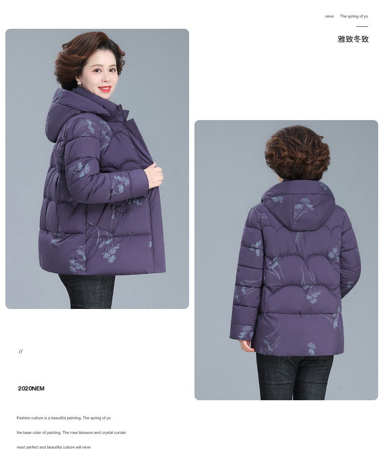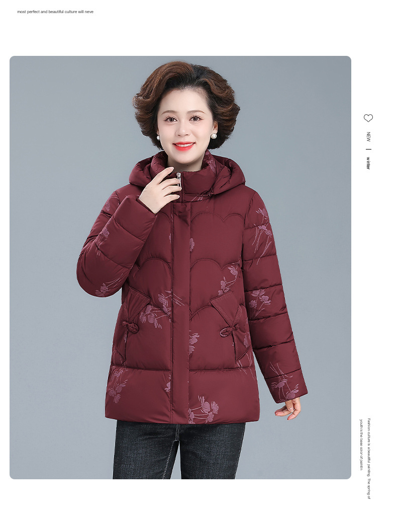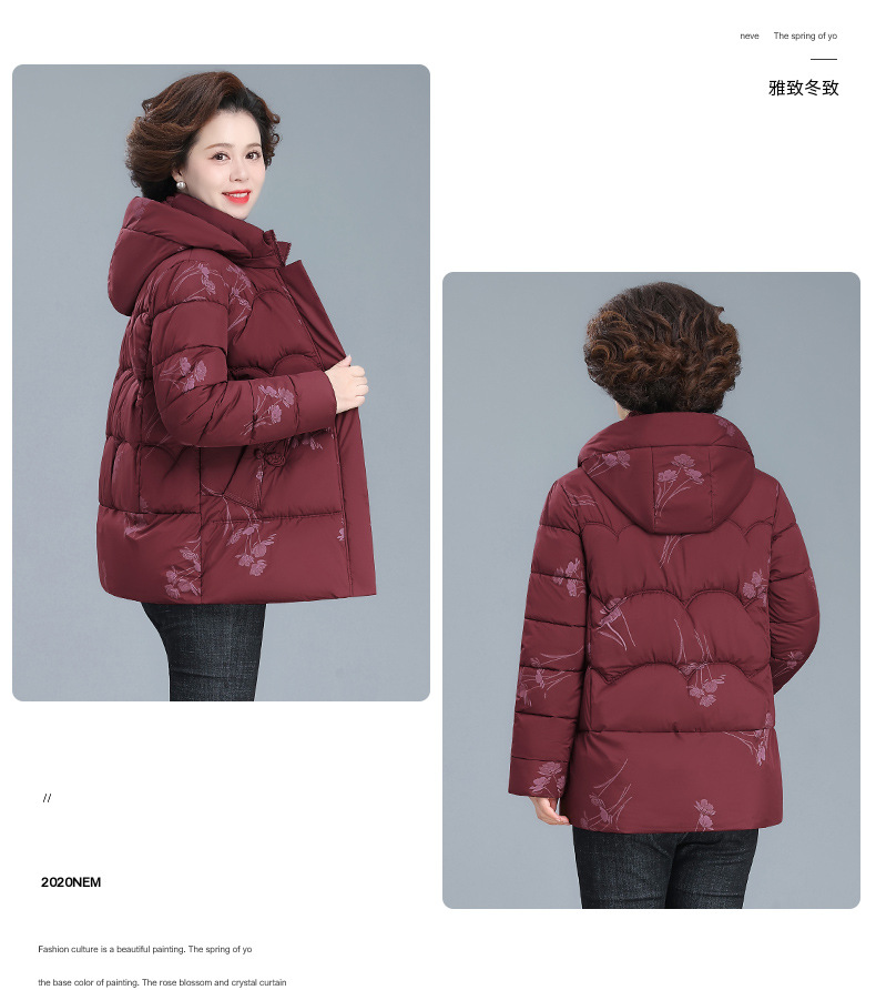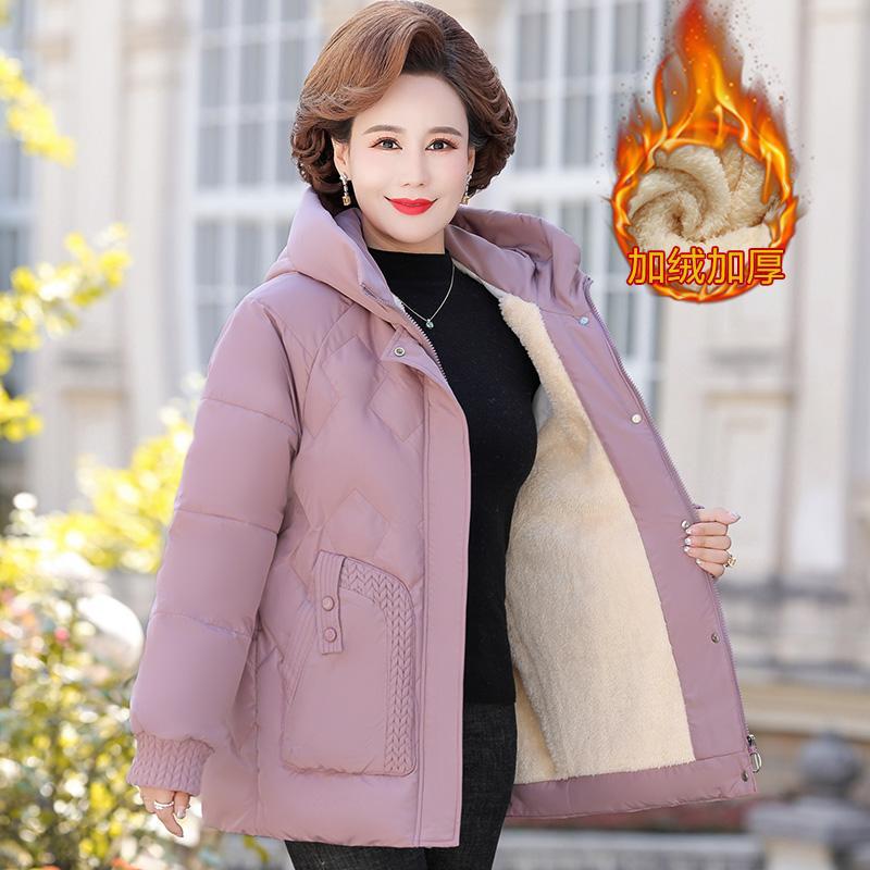 中年妈妈冬装羽绒棉服新款中老年女装冬季保暖棉袄加厚短外套