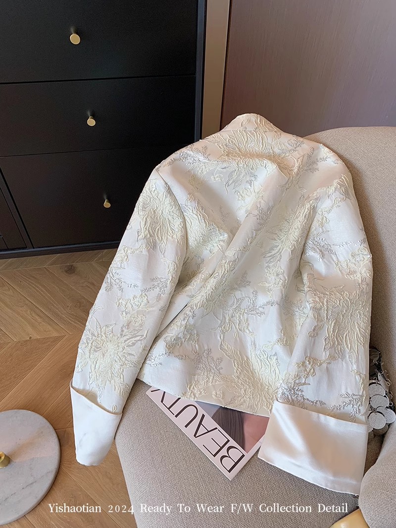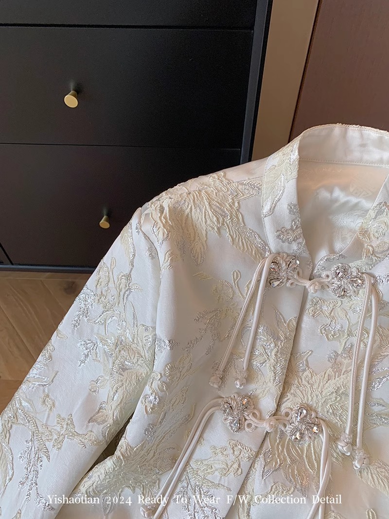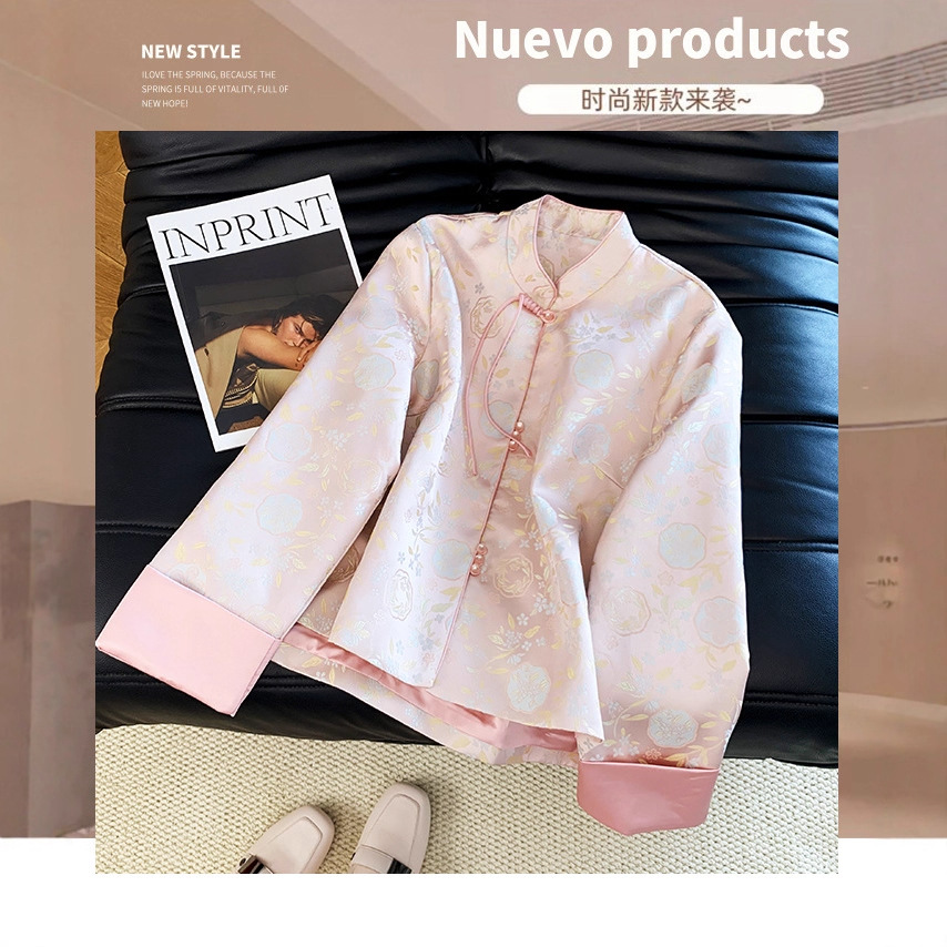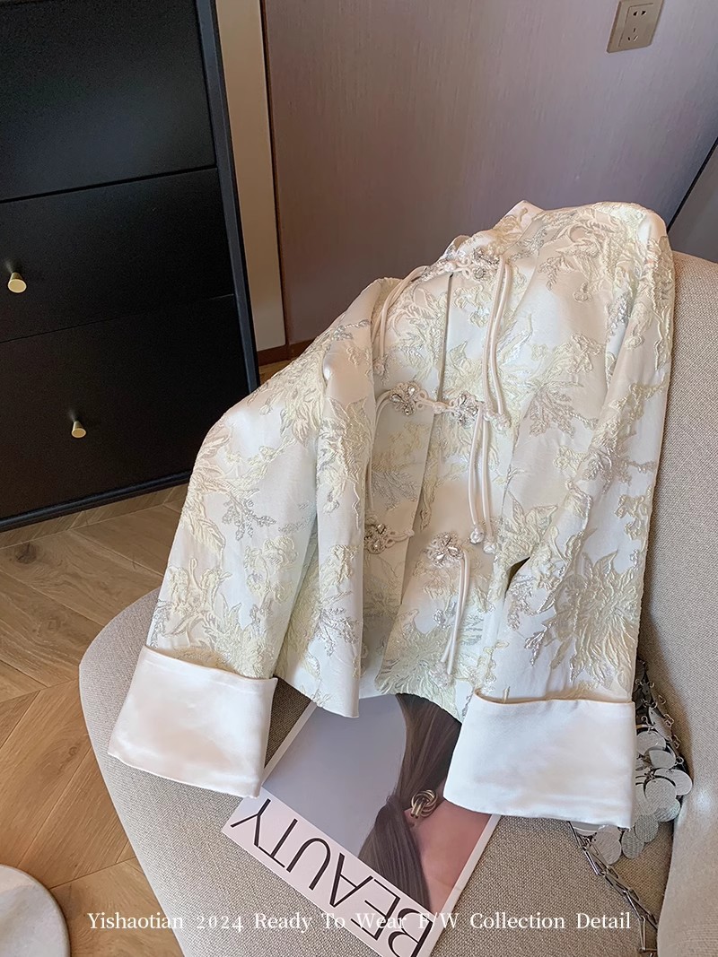 新中式国风改良重工缎面提花盘扣立领长袖显瘦淑女汉服上衣外套