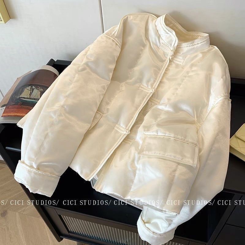 高级感新中式国风洋气立领盘扣短款棉服女秋冬复古轻薄款外套潮