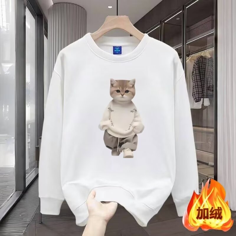 仓石一树秋冬款猫咪卡通印花圆领卫衣男士宽松休闲情侣长袖上衣潮
