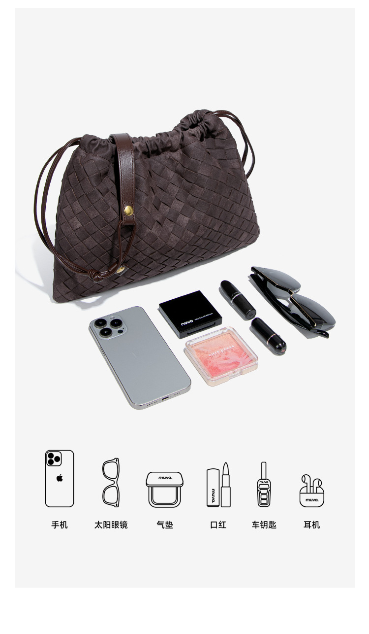 高级感小香风单肩腋下女包小众撞色编织女包大容量通勤斜跨水桶包