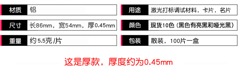 カラー金属アルミシート/レーザーマーキング名刺/アルミマグネシウム合金0.45厚/光ファイバーマシン彫刻調整材料