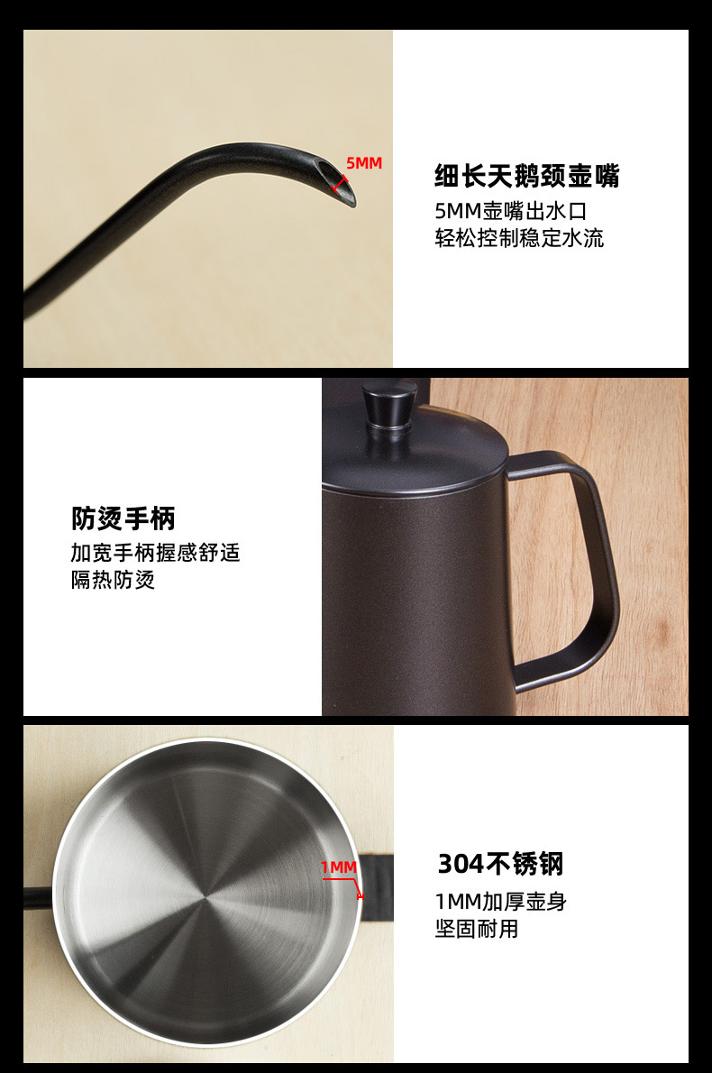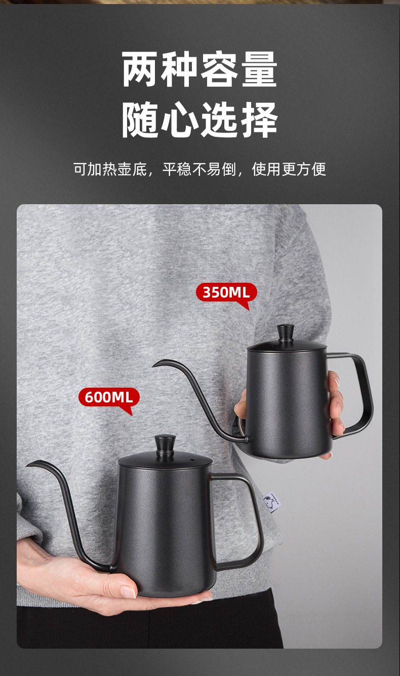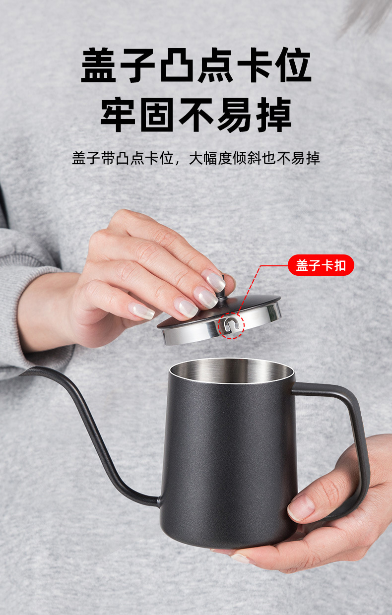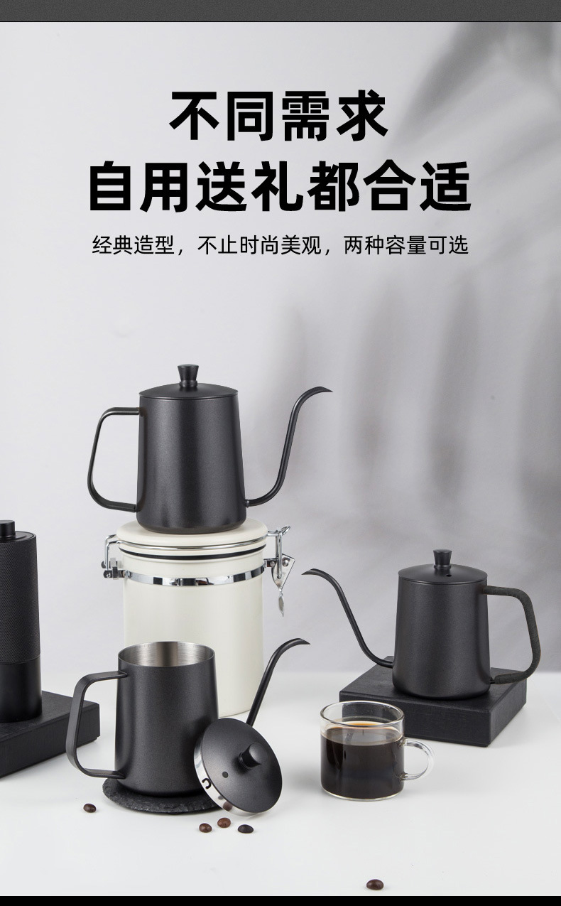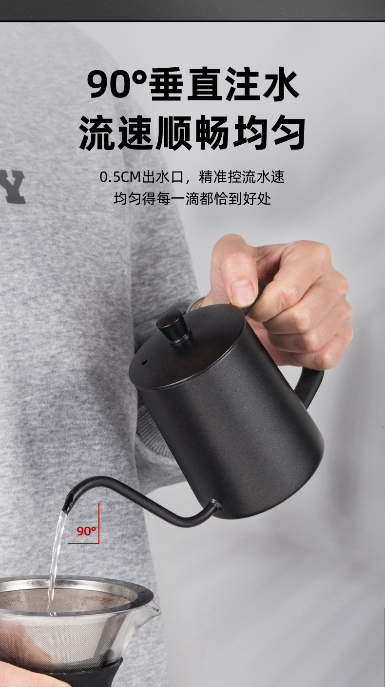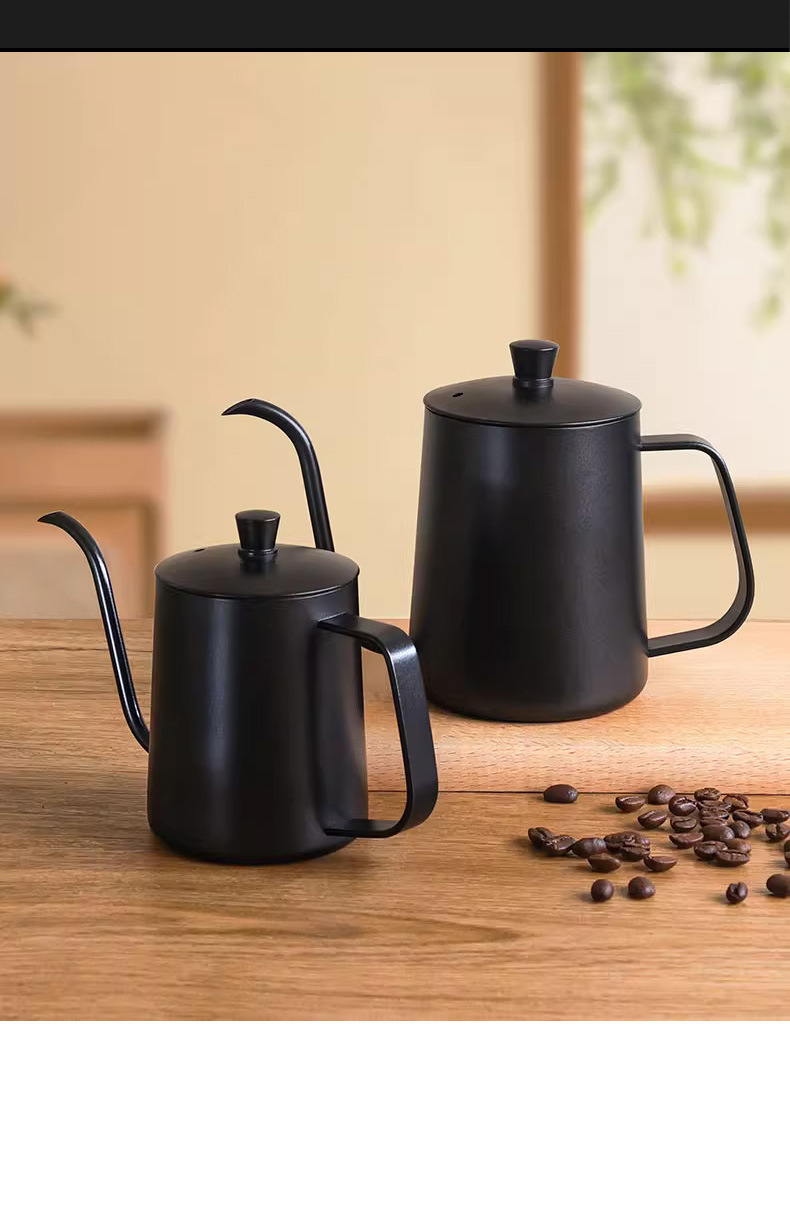 手沖コーヒーポット黒色蓋付き耳付コーヒーカップ抽出ポット長口コーヒー器具セット厚さ600ML