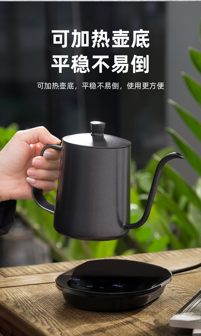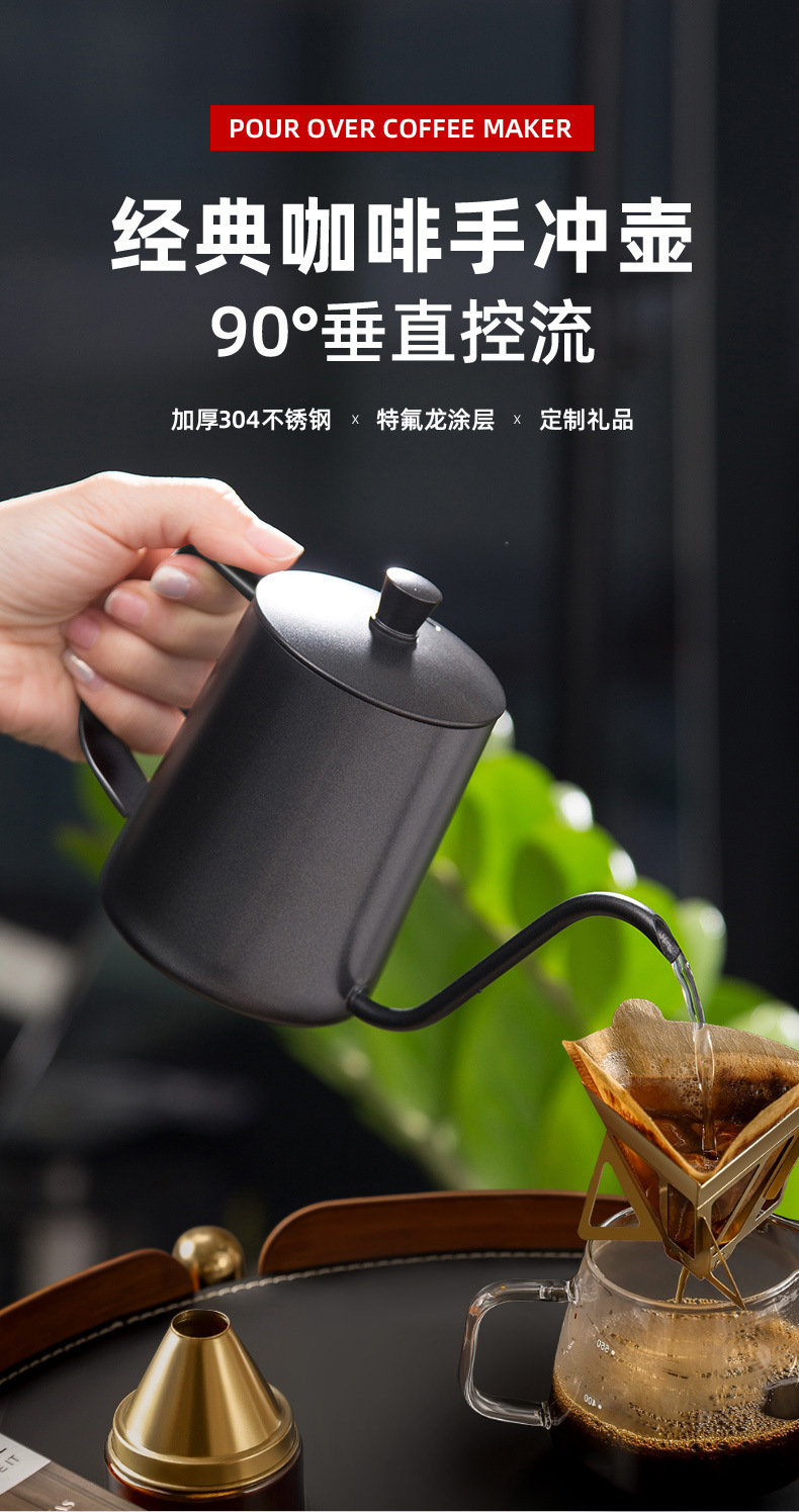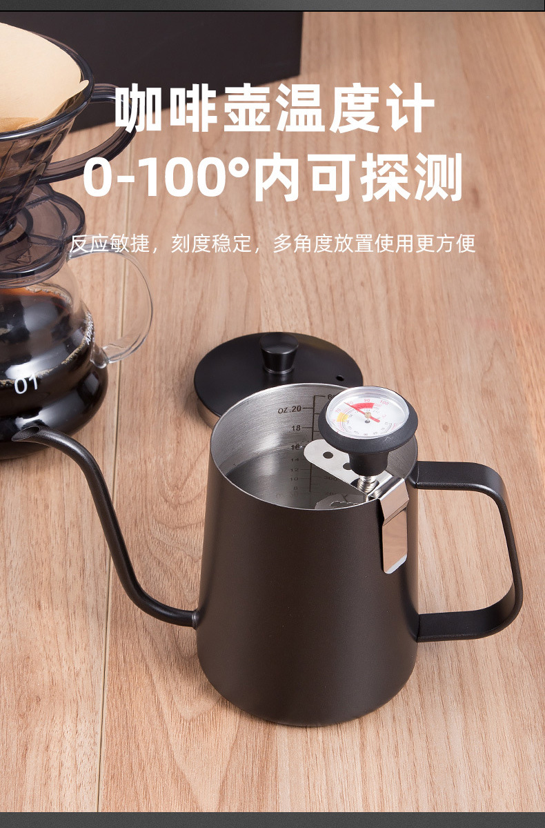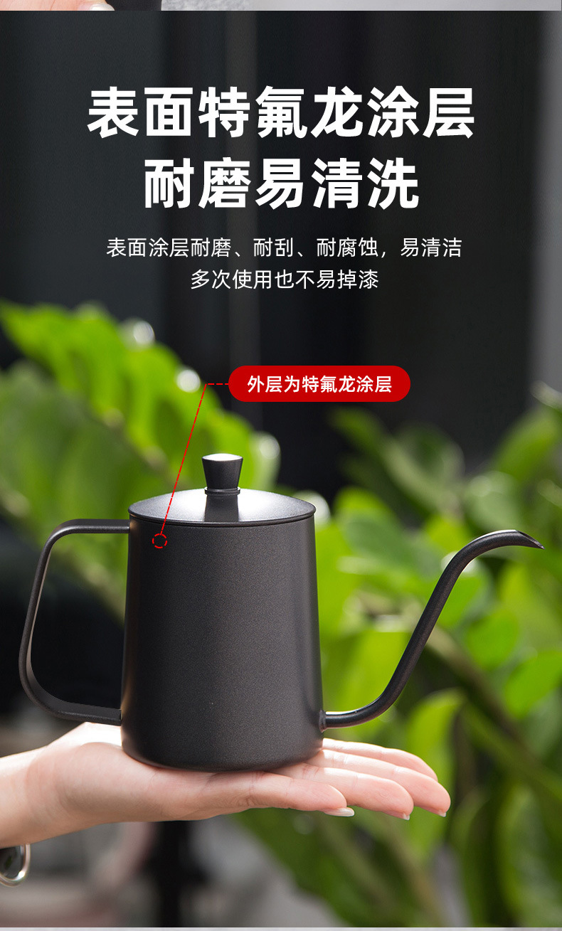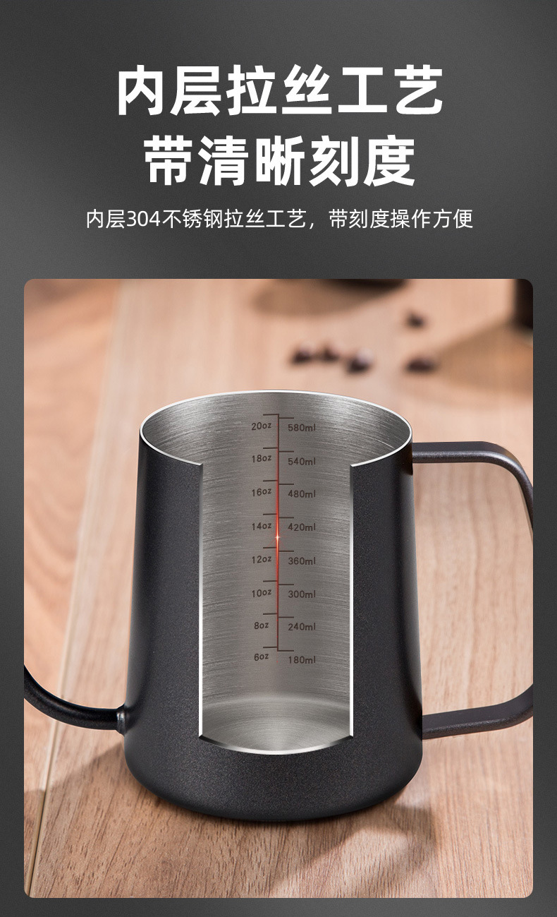 手沖コーヒーポット黒色蓋付き耳付コーヒーカップ抽出ポット長口コーヒー器具セット厚さ600ML