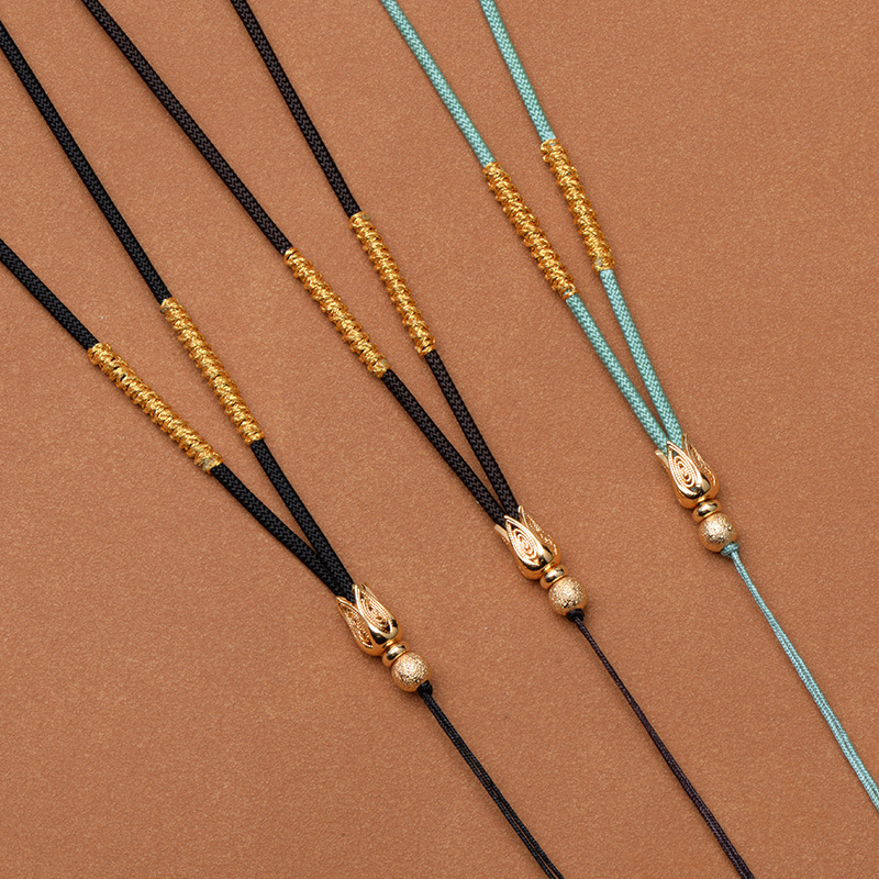 六字の真言diyのネックレスの縄は手で黄金の仏の札の蜜ろうの玉を編みます。