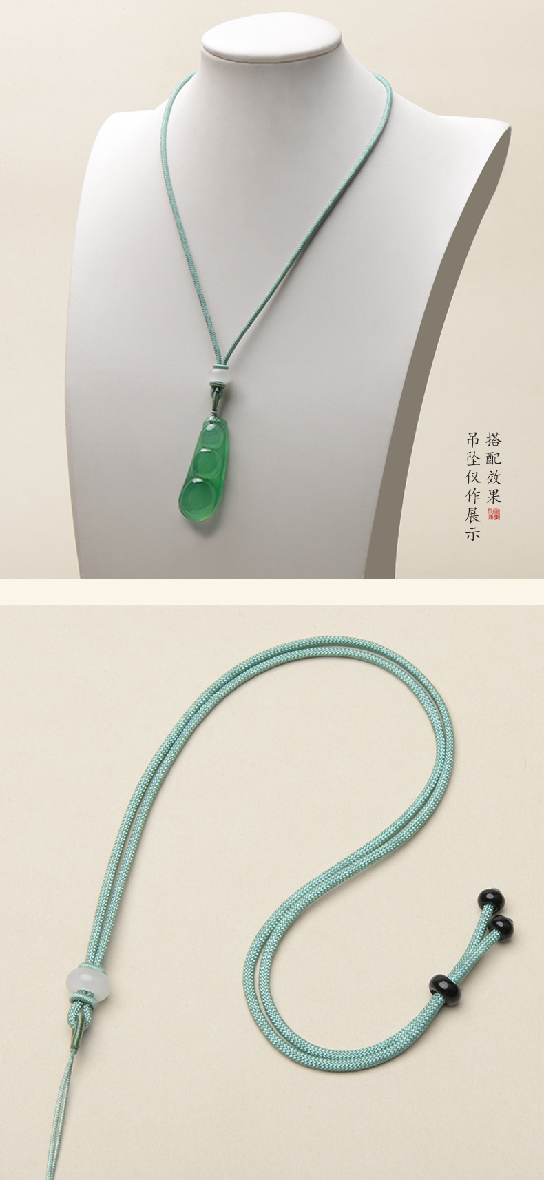 シンプルな平結びの2mm素雅男女調節可能な翡翠ペンダントジュエリー玉器ネックレスロープ卸売り