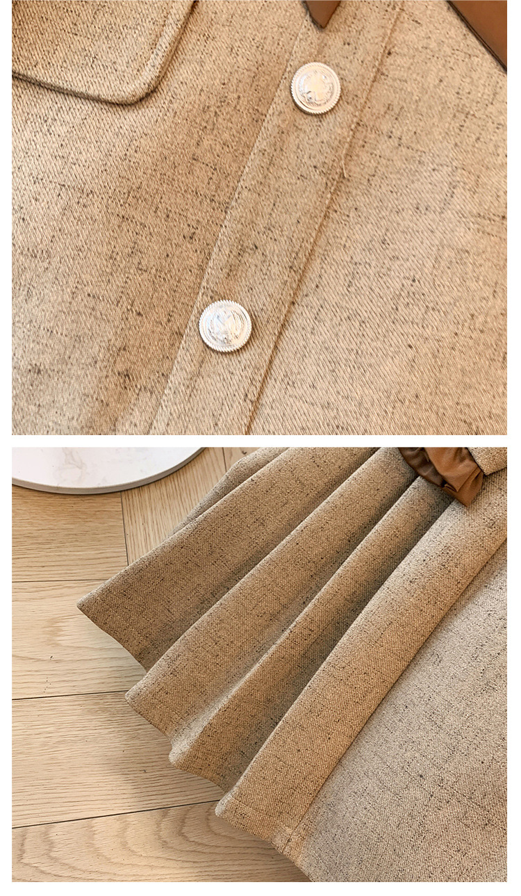 细节说明:布料无弹力,裙子有内衬,前面的纽扣和口袋是装饰,无法打开,背后有隐藏拉链。