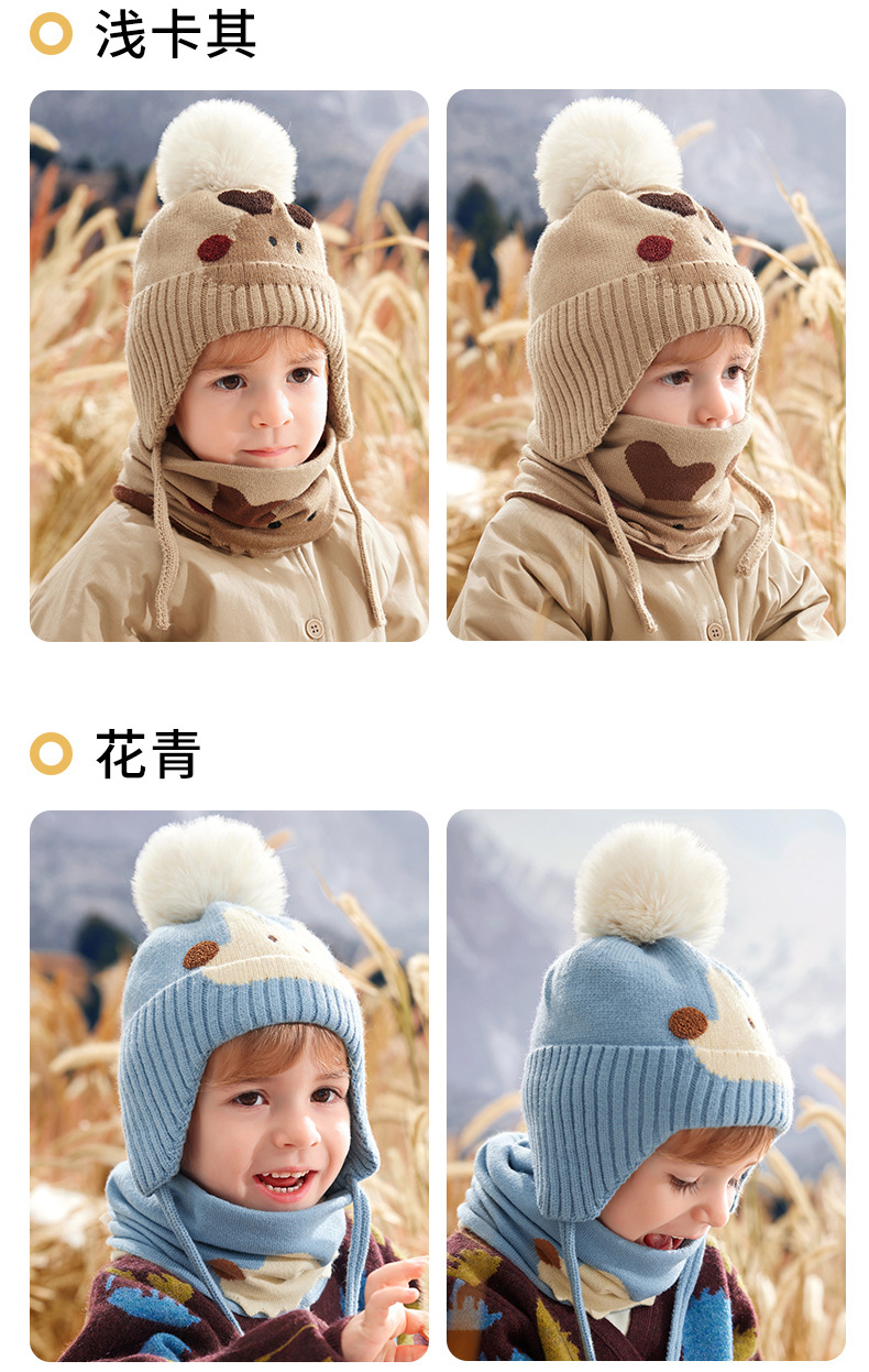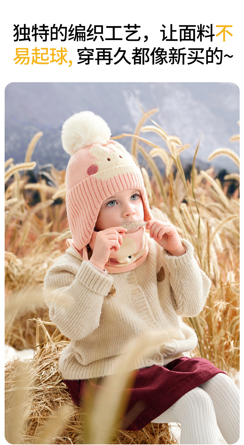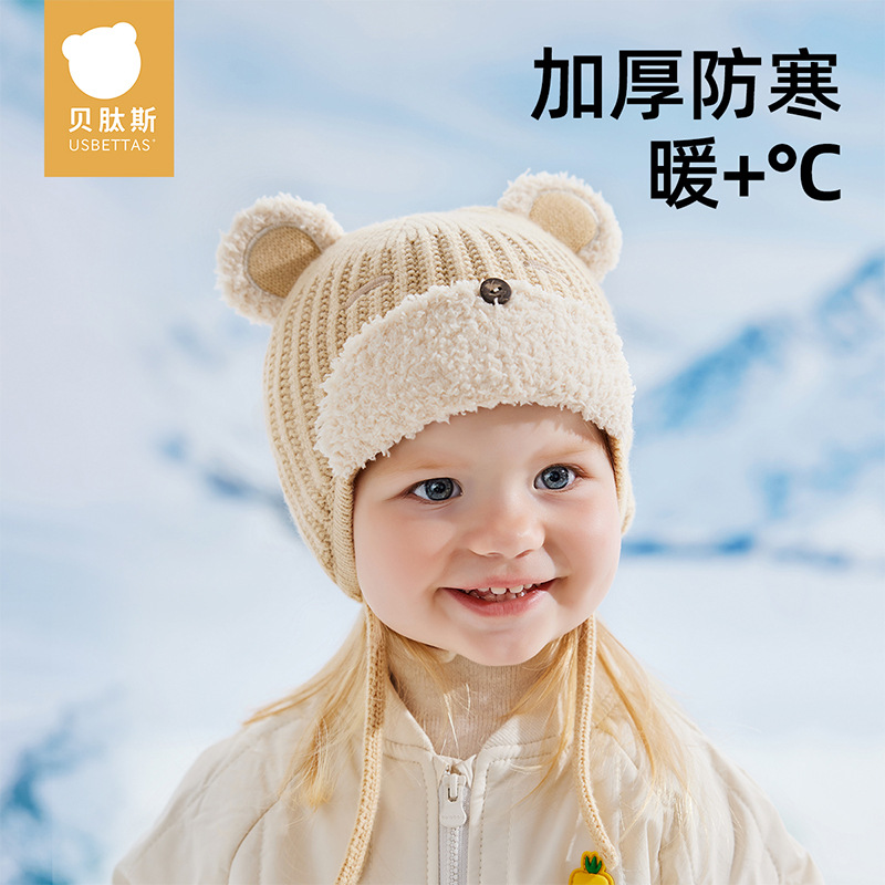 贝肽斯儿童帽子秋冬季2025新款男女宝宝毛线针织帽加厚防风护耳帽