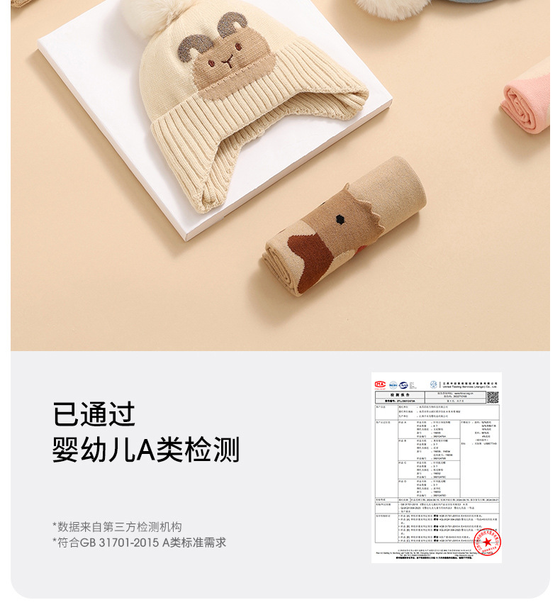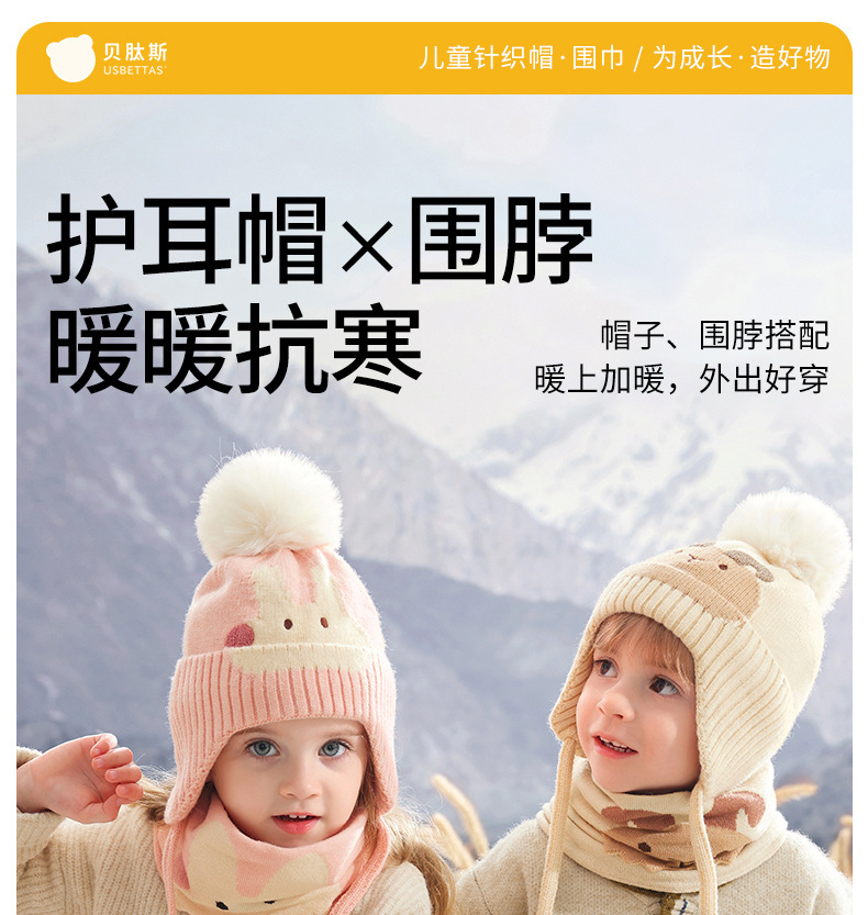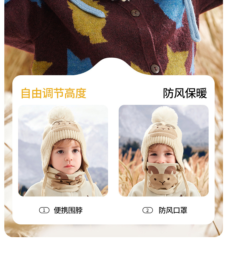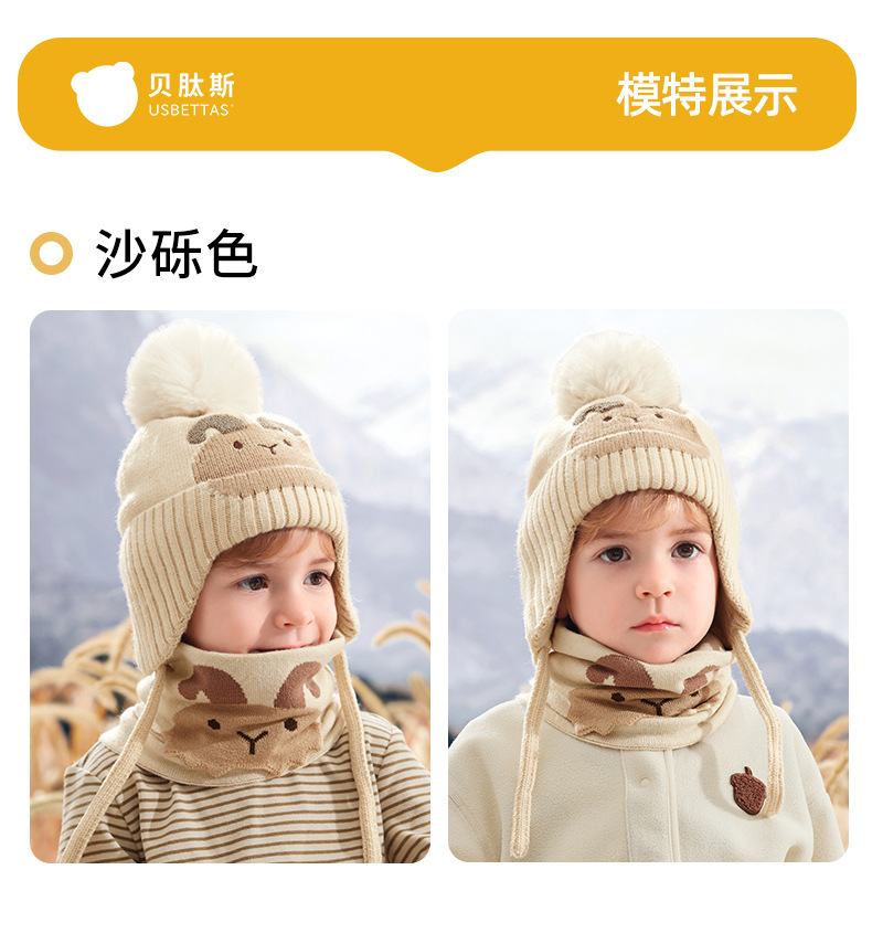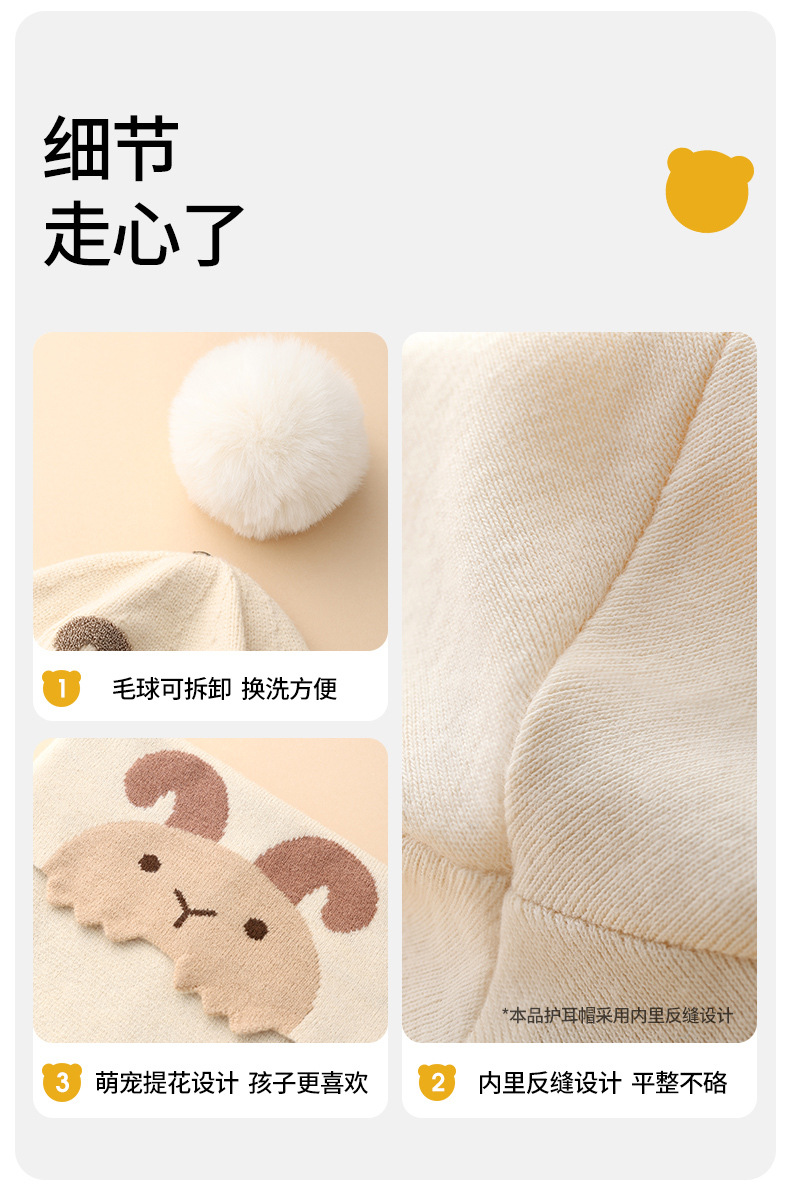 贝肽斯儿童帽子秋冬季2025新款男女宝宝毛线针织帽加厚防风护耳帽