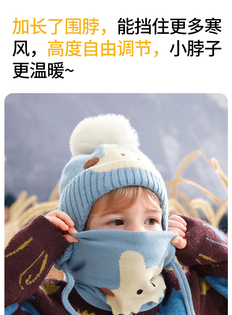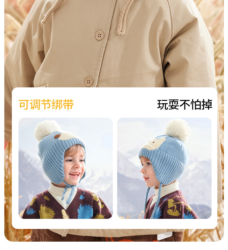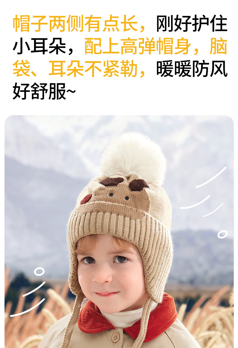 贝肽斯儿童帽子男女宝宝毛线针织帽保暖防风加厚婴儿护耳帽秋冬