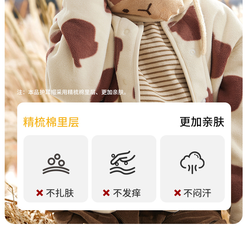 贝肽斯婴儿帽子秋冬季加绒加厚保暖防风男女宝宝儿童毛绒护耳帽
