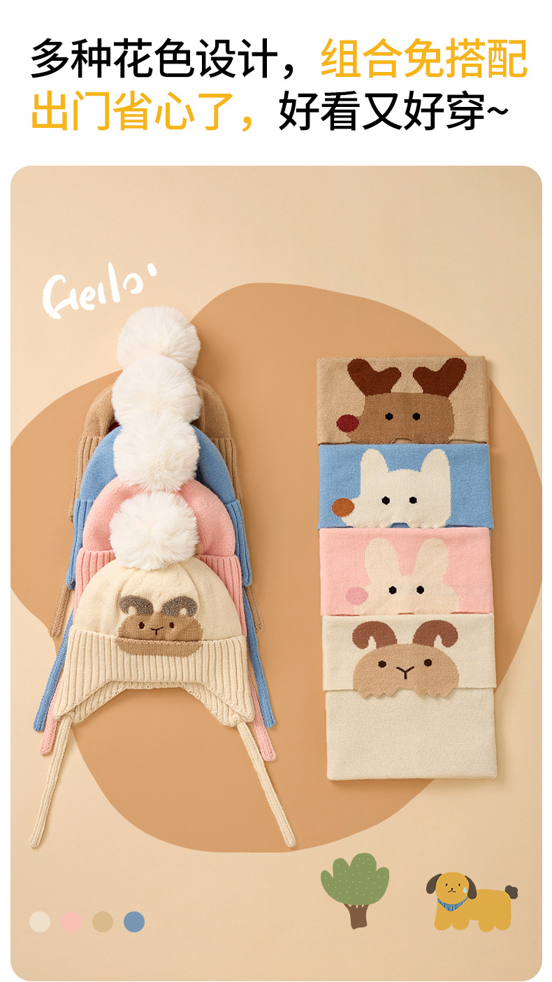 ベティス男女兼用子供帽子秋冬2025新作幼児用防風耳当て付き保温ニット帽