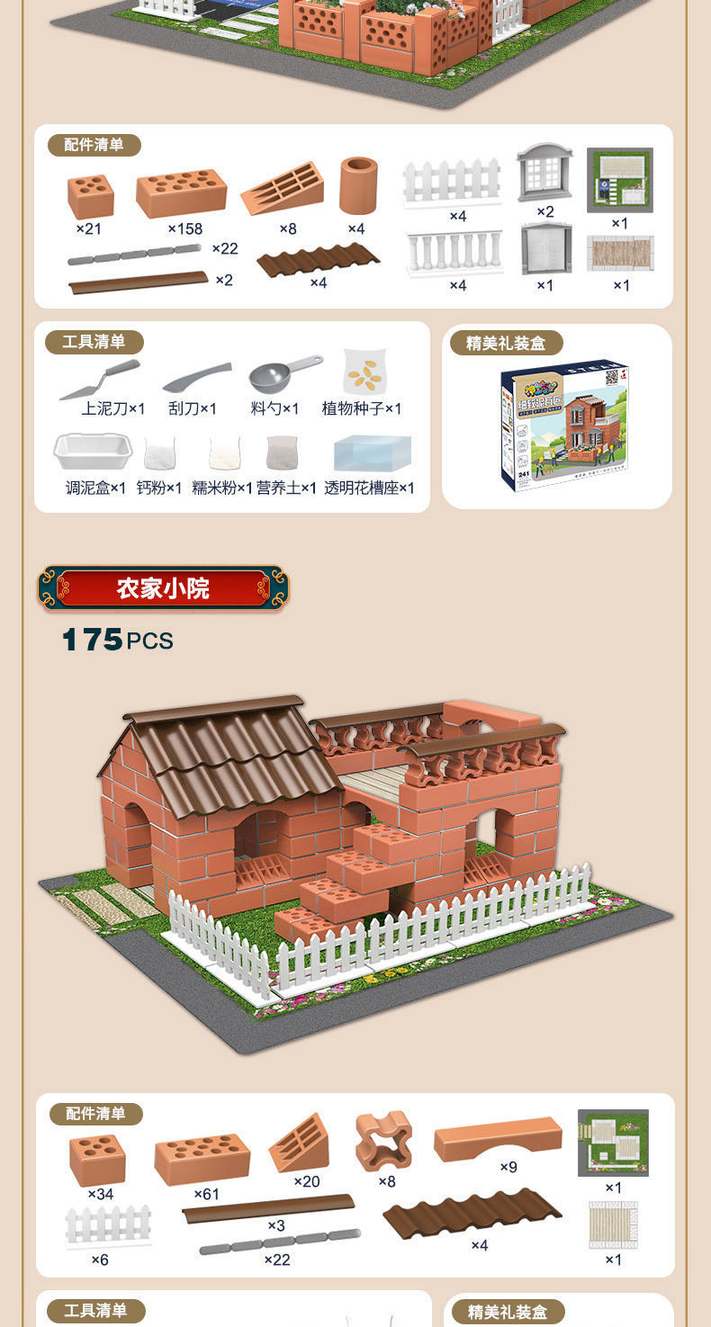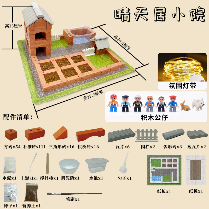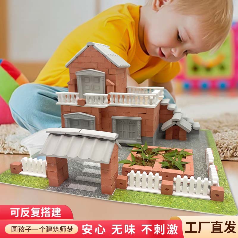 盖房子玩具迷你砖头块diy真砖砌墙小小泥瓦匠建筑师儿童搭建房子