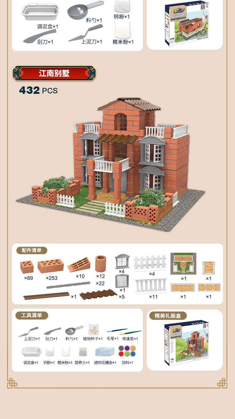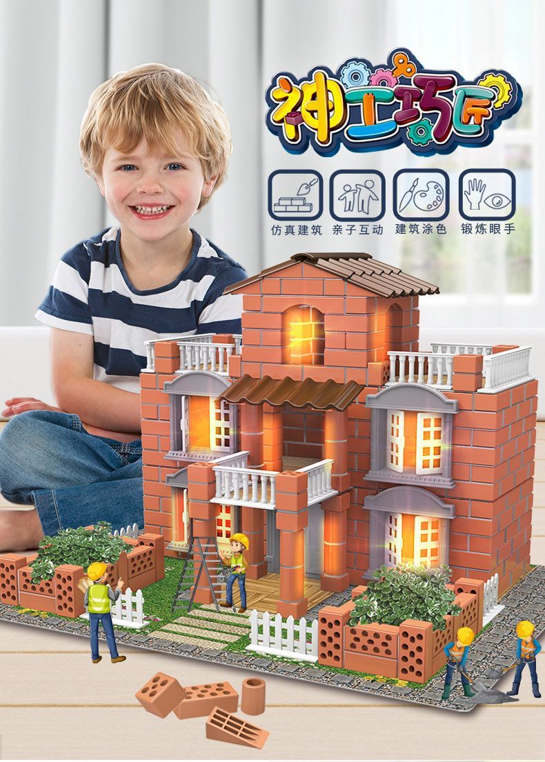 小小泥瓦匠盖房子砖块屋建筑儿童手工拼搭益智玩具男女孩礼物拼装