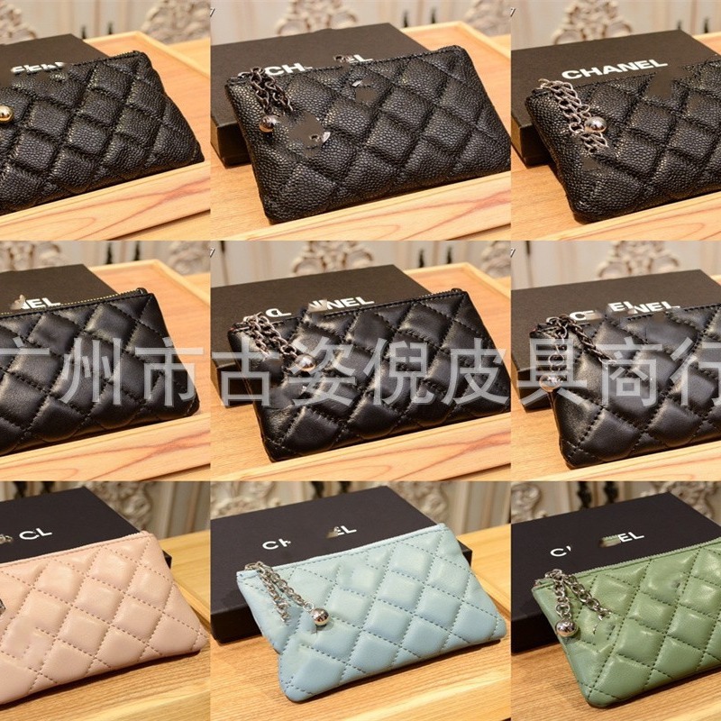 羊皮菱格ファスナー小銭入れ薄いキーホルダー証明書収納カードケース大容量クロスボーダー外国貿易女性財布