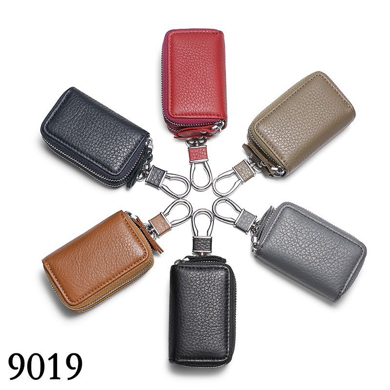 本物のソフトレザーカーキーケース、メンズダブルジッパーバッグ、レディースウエストキーバッグ、多機能家庭用キーケース収納