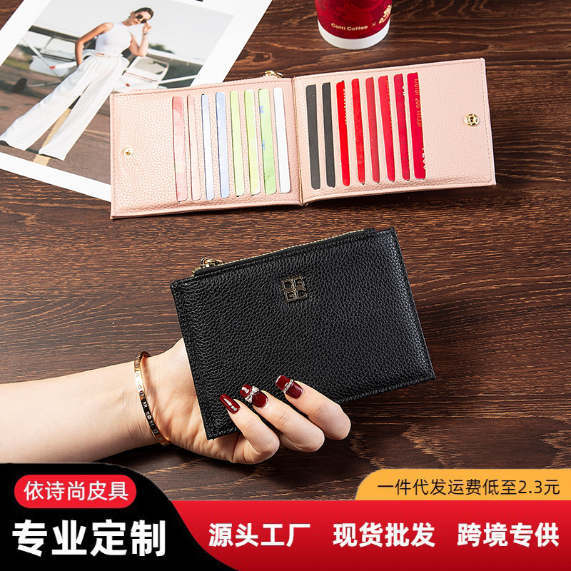 レトロな百合財布の女性2025の新しいシンプルなファッションカードバッグ二合一薄いカードの位置ファスナー証明書クリップ