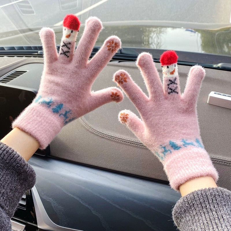 冬季毛线手套可爱雪人针织可触屏学生写字手套加绒保暖骑行手套