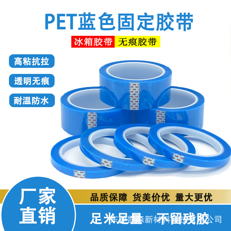 メーカー卸売りpetブルー固定テープ冷蔵庫テープ家電無痕テープ耐温防水不残糊