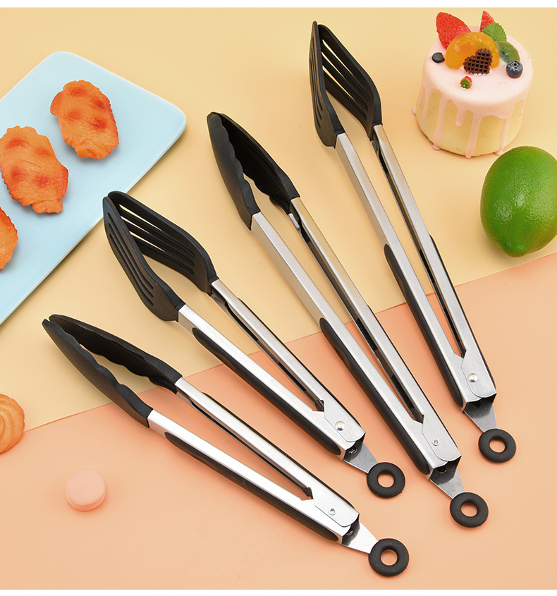 耐高温シリコン食品クリップ9インチ12インチステンレス食品クリップ家庭用ステーキ焼きパン分食クリップ