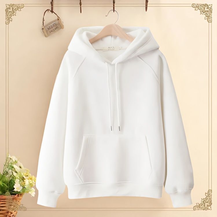 100全棉卫衣女双层帽子白色高档学生百搭宽松上衣潮新款情侣上衣