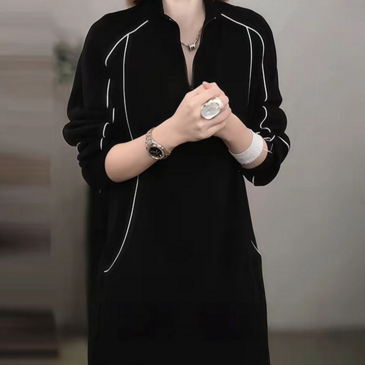 ビーズ半袖ドレス夏のハイエンド韓国スタイルの新しいデザイン黒ラウンドネック 2025 スプライシングフィッシュテールスカート