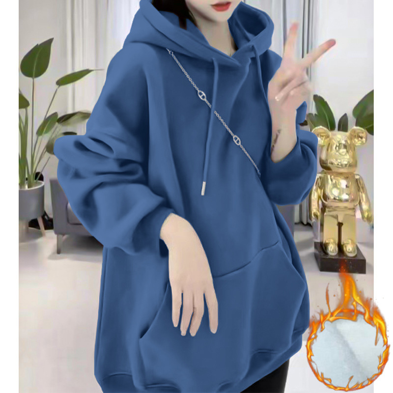 卫衣女年新款潮ins加厚加绒外套宽松韩版冬天中长款上衣秋冬装