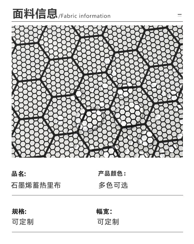 グラフェン導電性加熱シート生地遠赤外線蓄熱ブラックゴールドブラックシルバーダウンジャケット暖かいハニカム裏地生地