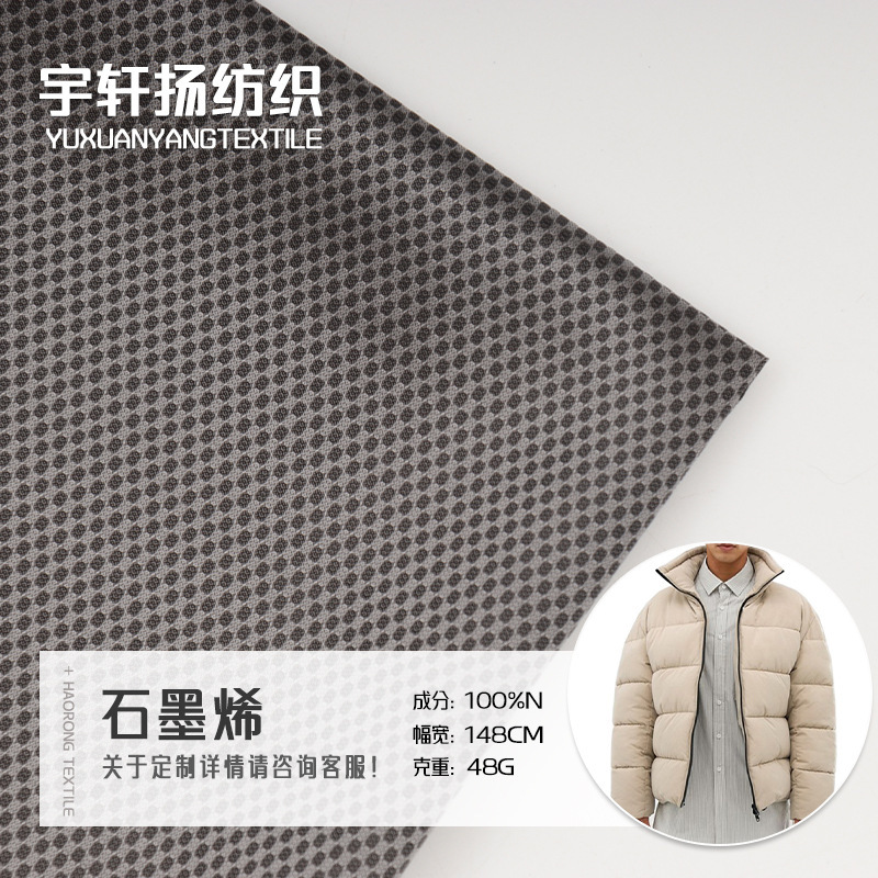 ダウンジャケットグラフェン黒金里材導電性自己発熱昇温裏地蓄熱保温抗菌ポリエステルナイロン