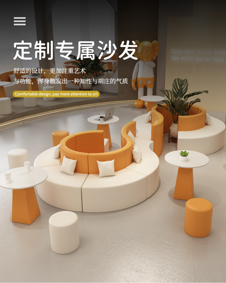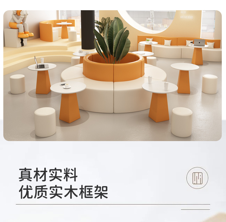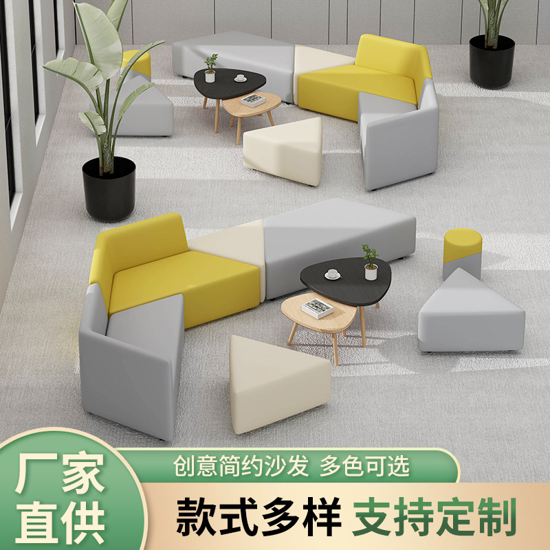 办公室休闲休息区大厅会客接待现代简约软包异形创意沙发茶几组合
