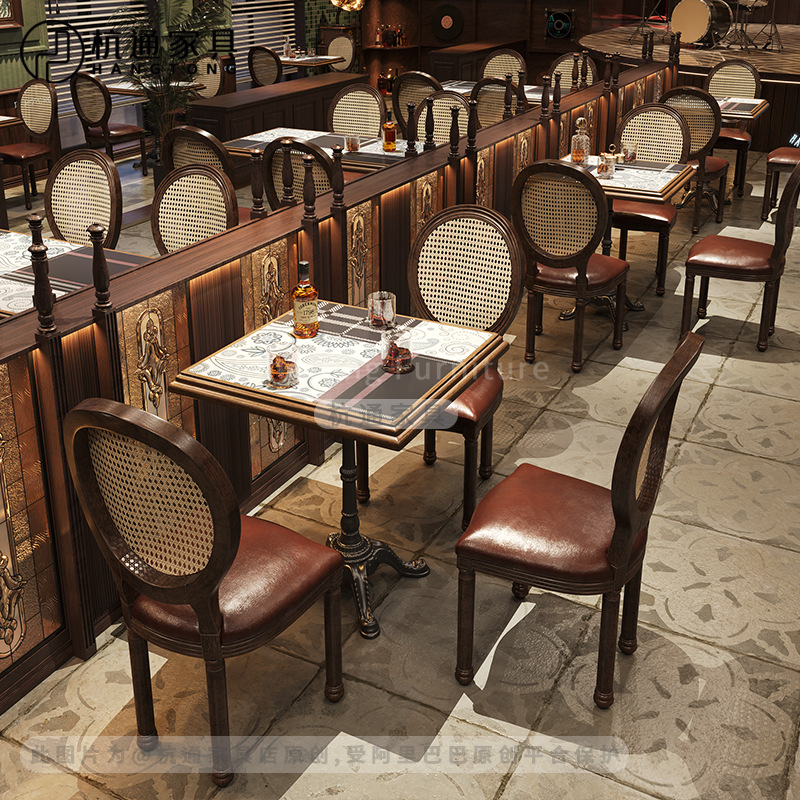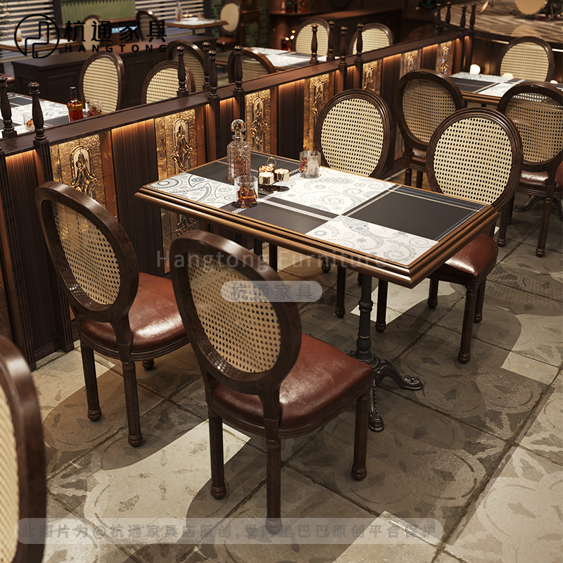 レトロな洋食レストラン、パブのテーブルと椅子、バーカフェのテーブルと椅子、カウチソファ、テーマレストランのテーブルと椅子の組み合わせ