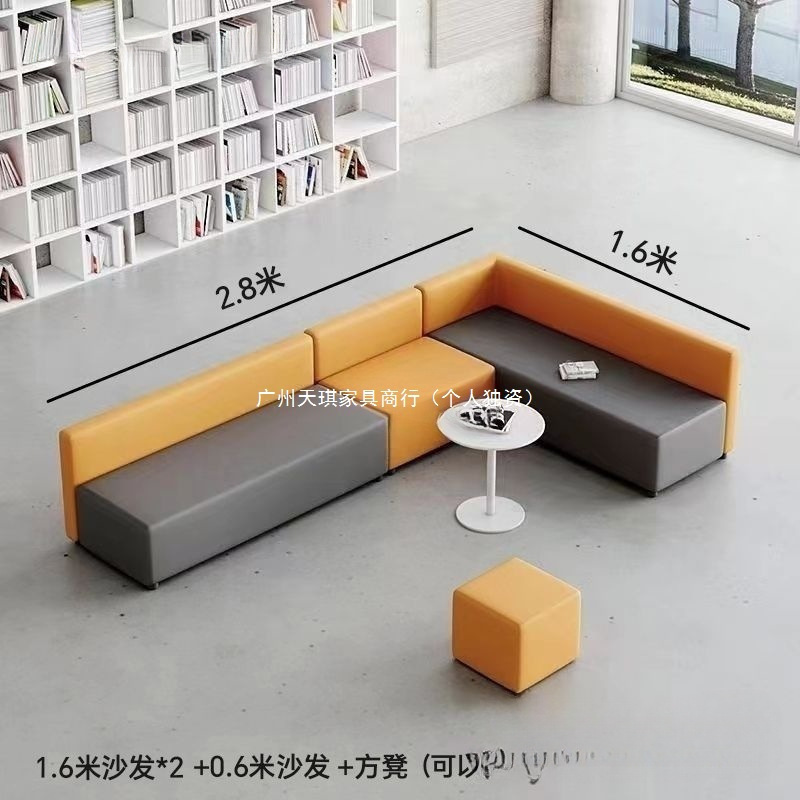 休息区模块沙发图书馆休闲洽谈沙发凳街道办办公室豆腐块沙发组合