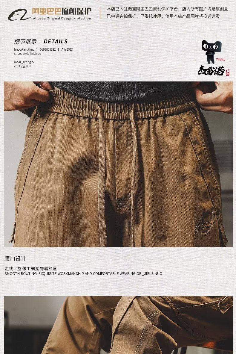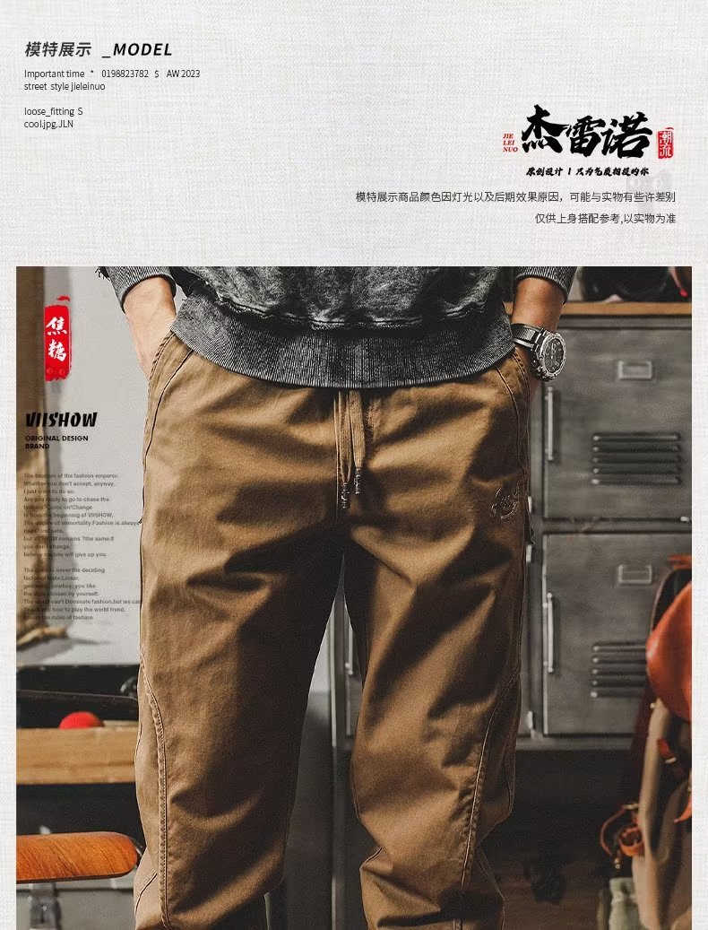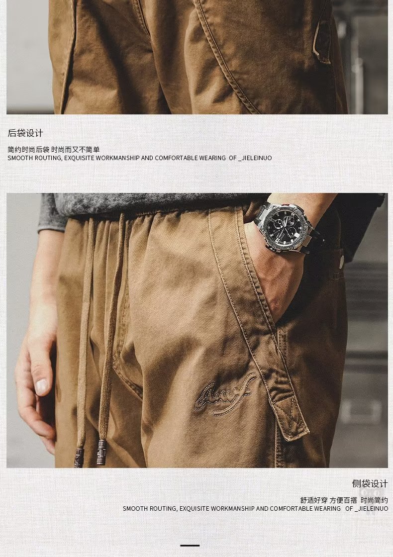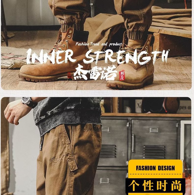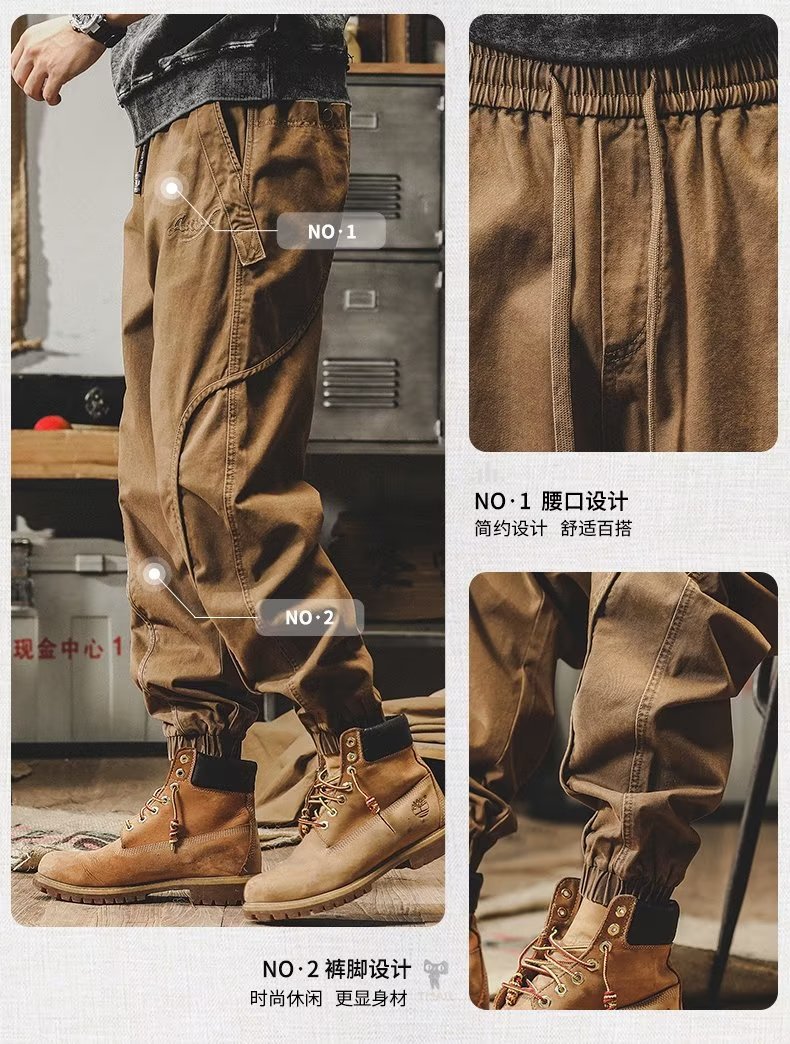 NASA工装裤子男款春秋美式束脚纯棉运动裤男生潮男士休闲长裤