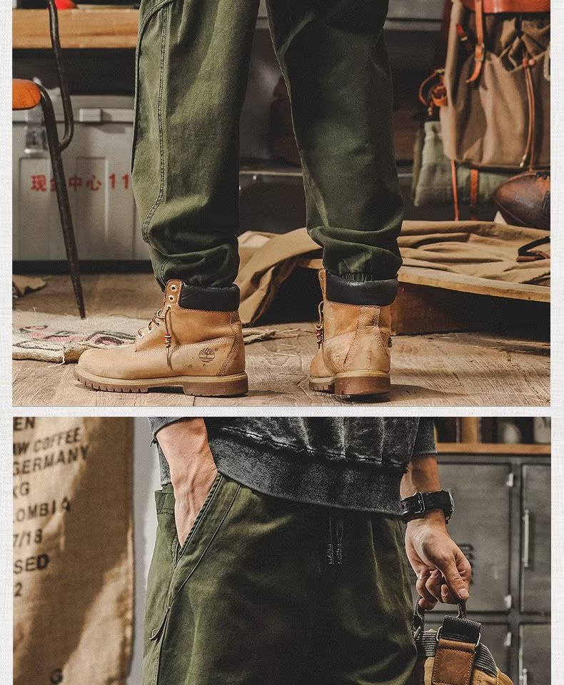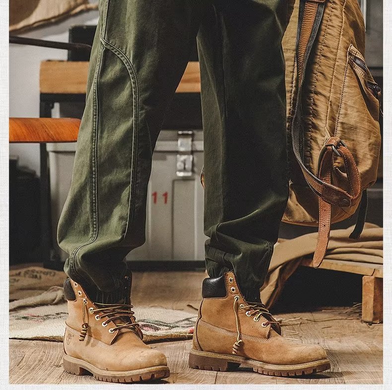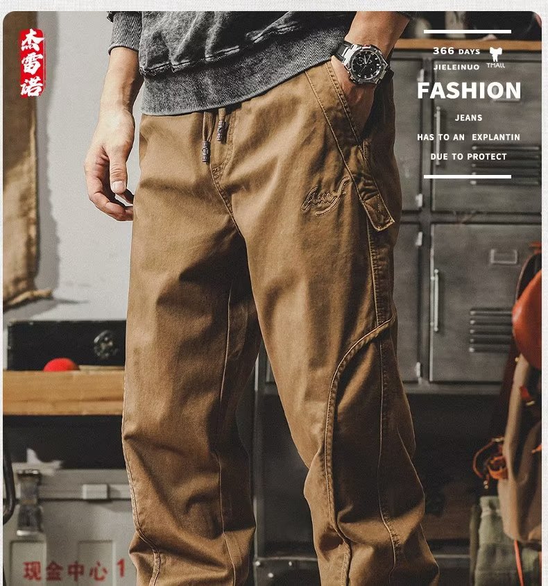 アメリカの重いポンドの復古の工装のズボンの男性の秋のゆったりしているストレートのカーキ色の男性のカジュアルなズボンの春秋の足首のズボン