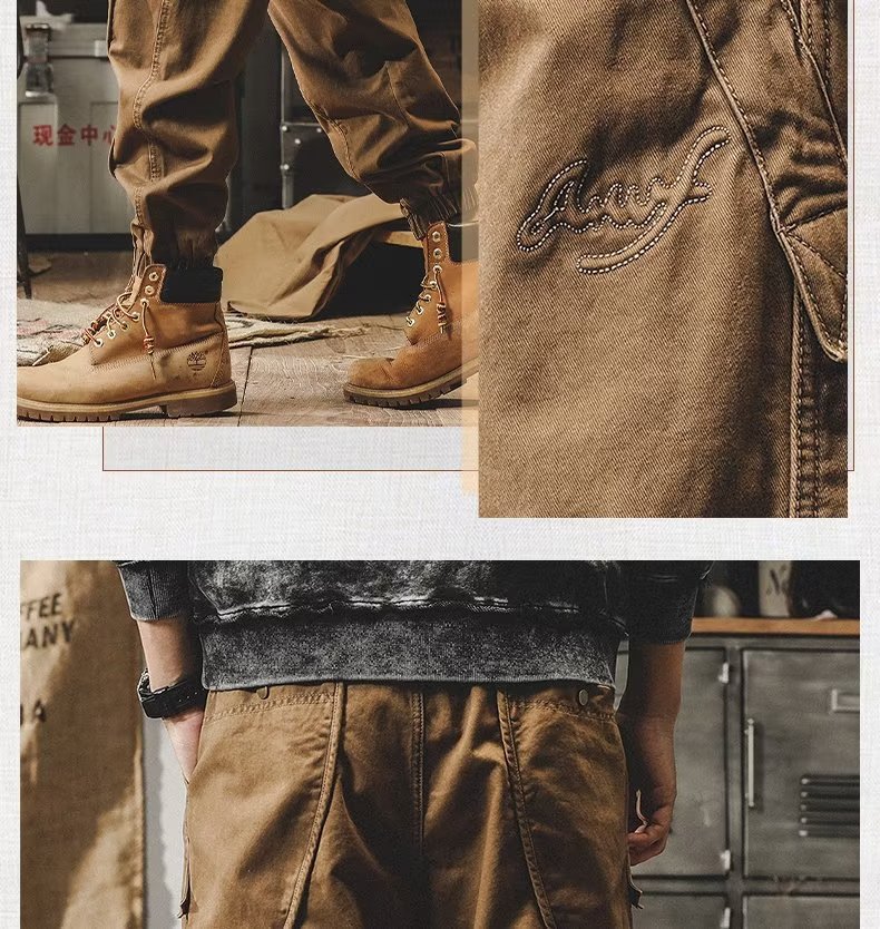 アメリカの工装の足首のズボンの男のゆるい春と秋の足首のズボンの耐摩耗性の自動車は復古の重いポンドのカジュアルなズボンの男を修理します。