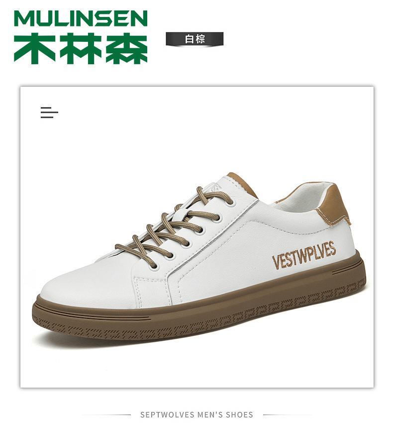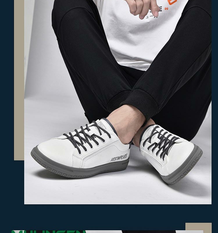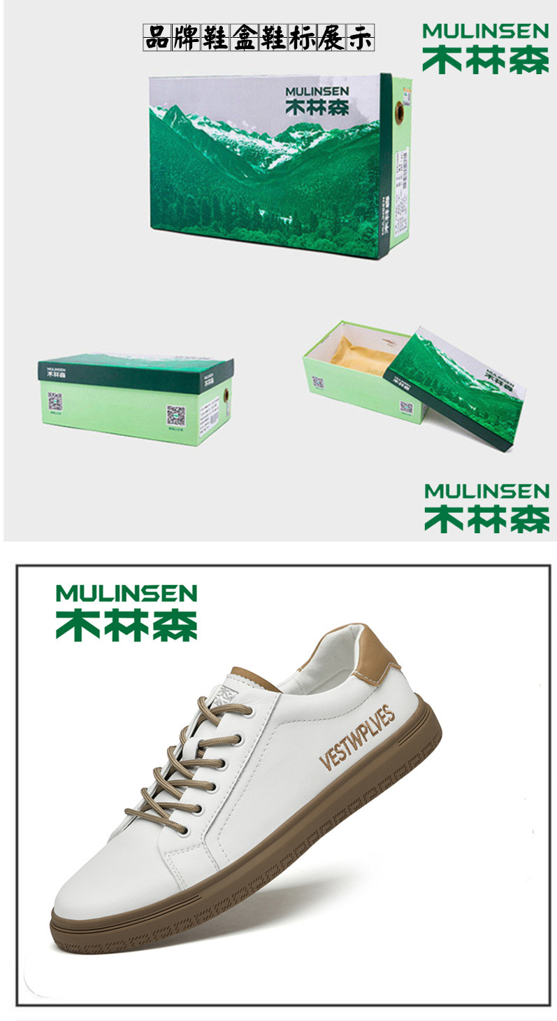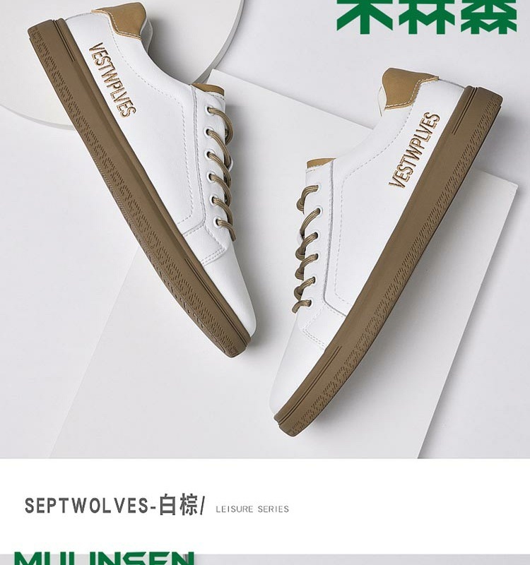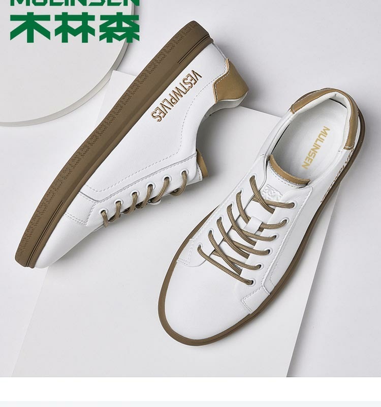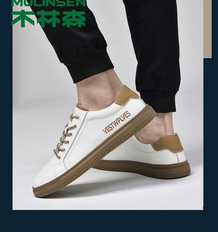 木林森男靴本革通気板靴男性白靴百合潮靴平底カジュアル靴男性旅行靴