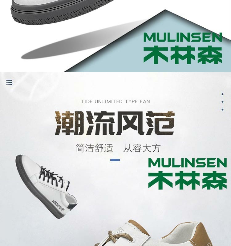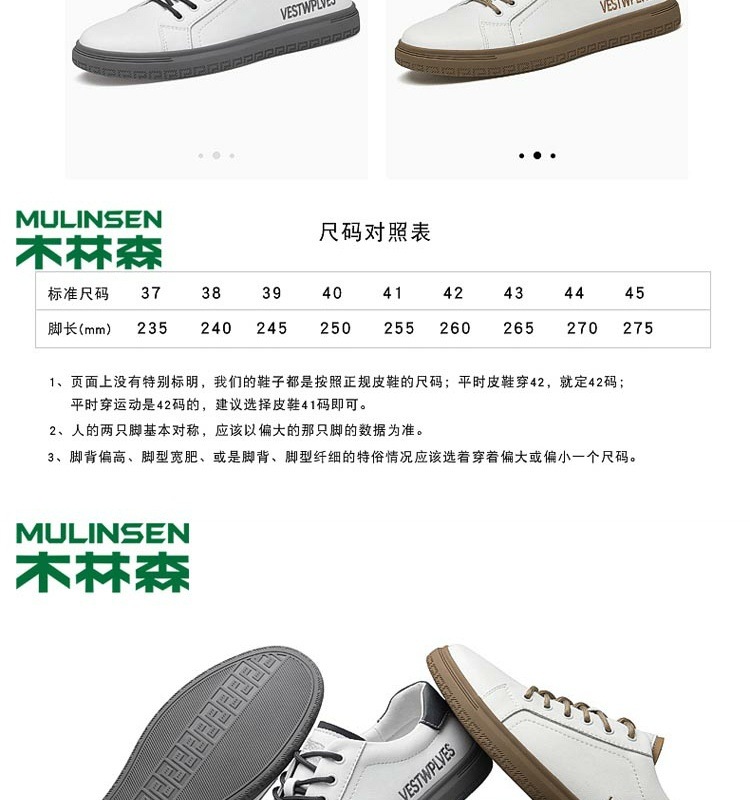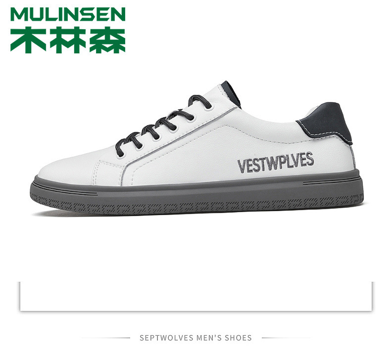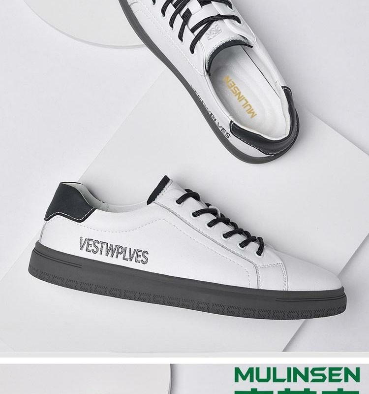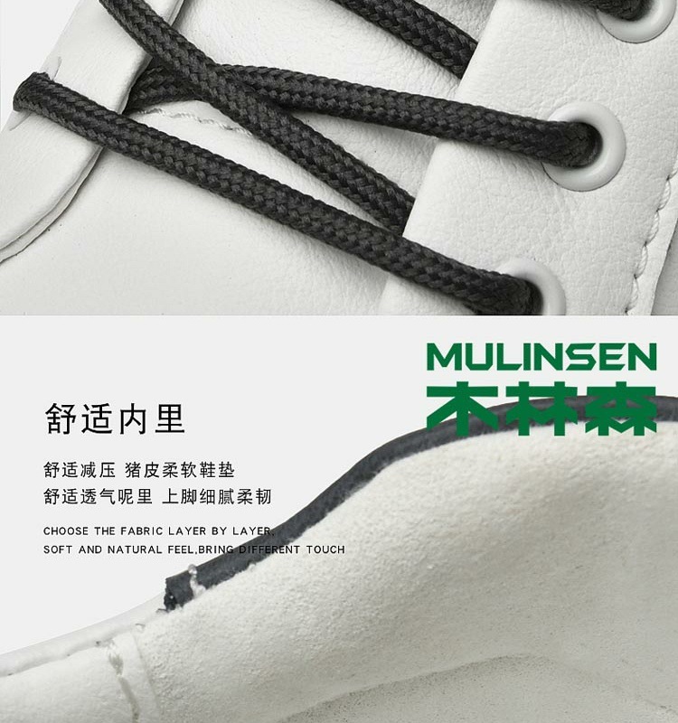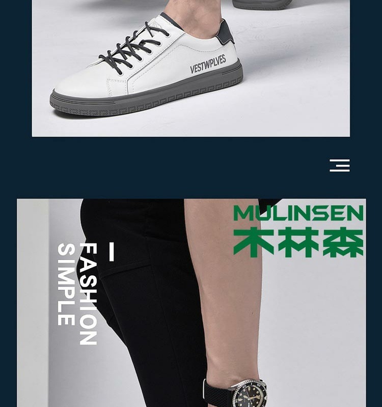 木林森男靴本革通気板靴男性白靴百合潮靴平底カジュアル靴男性旅行靴
