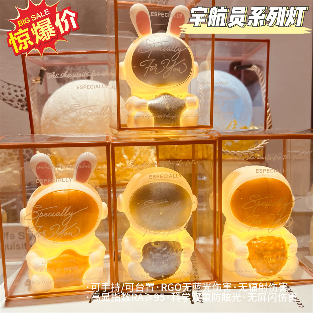 学生宿舍小夜灯摆件礼物创意护眼灯兔子宇航员氛围灯卧室装饰搪胶