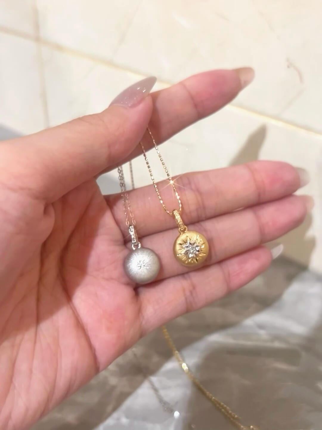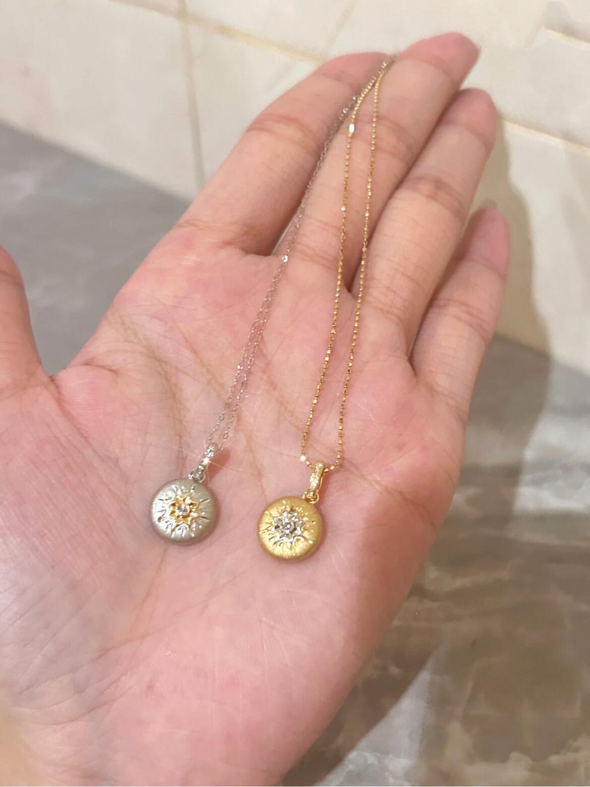 ブラッシュド八芒星ネックレス ゴールドカラー,つや消し八芒星ネックレス ホワイトゴールド