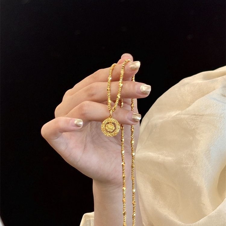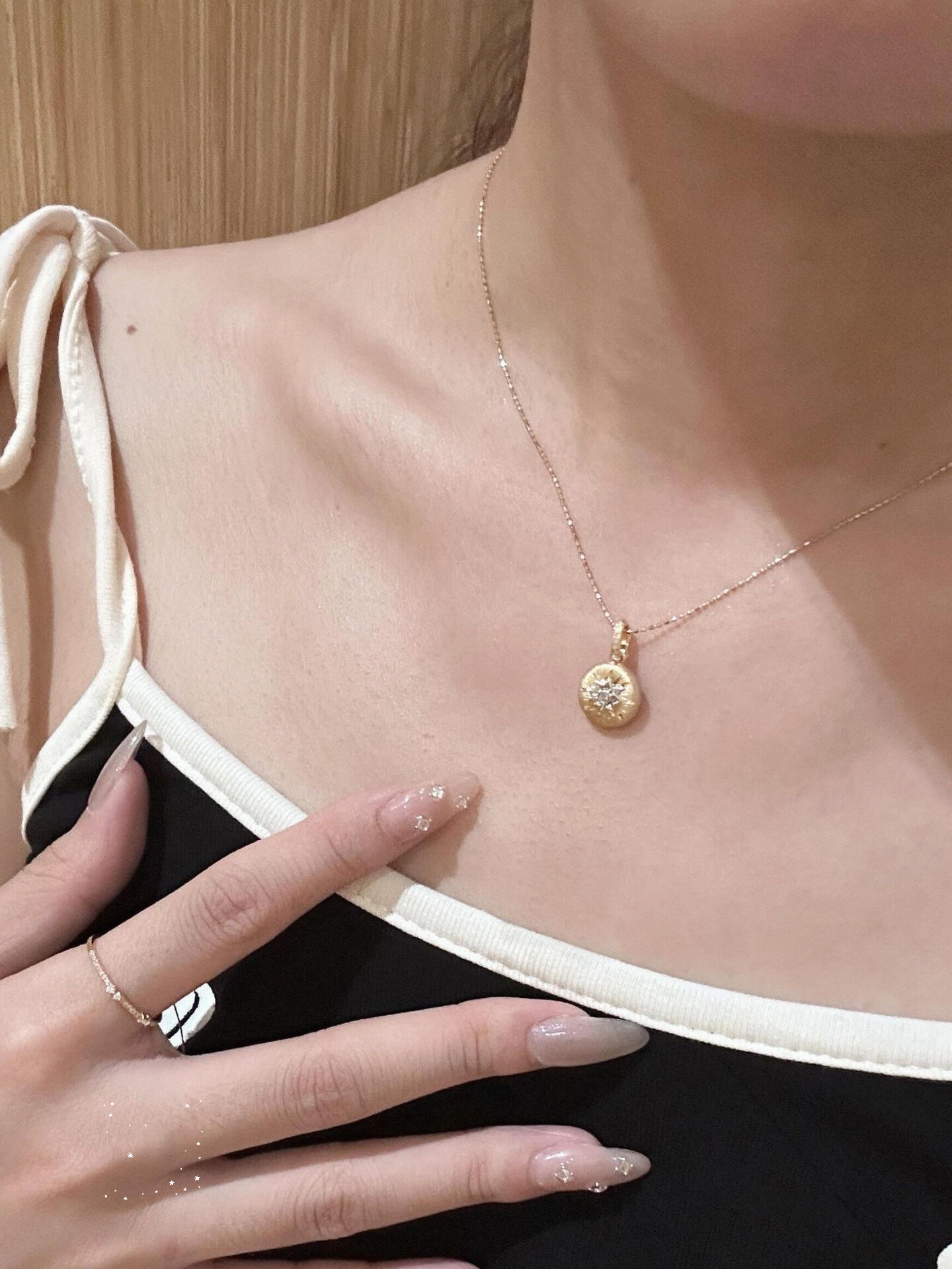 中古ドットドリルひまわりペンダントネックレスレディースヴィンテージレトロオールドネックレスニッチデザイン鎖骨チェーン