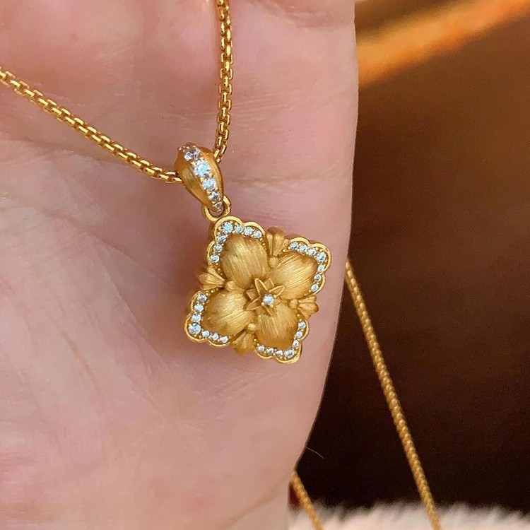 洗練された高級感の透かし彫りの四つ葉のクローバーのネックレス