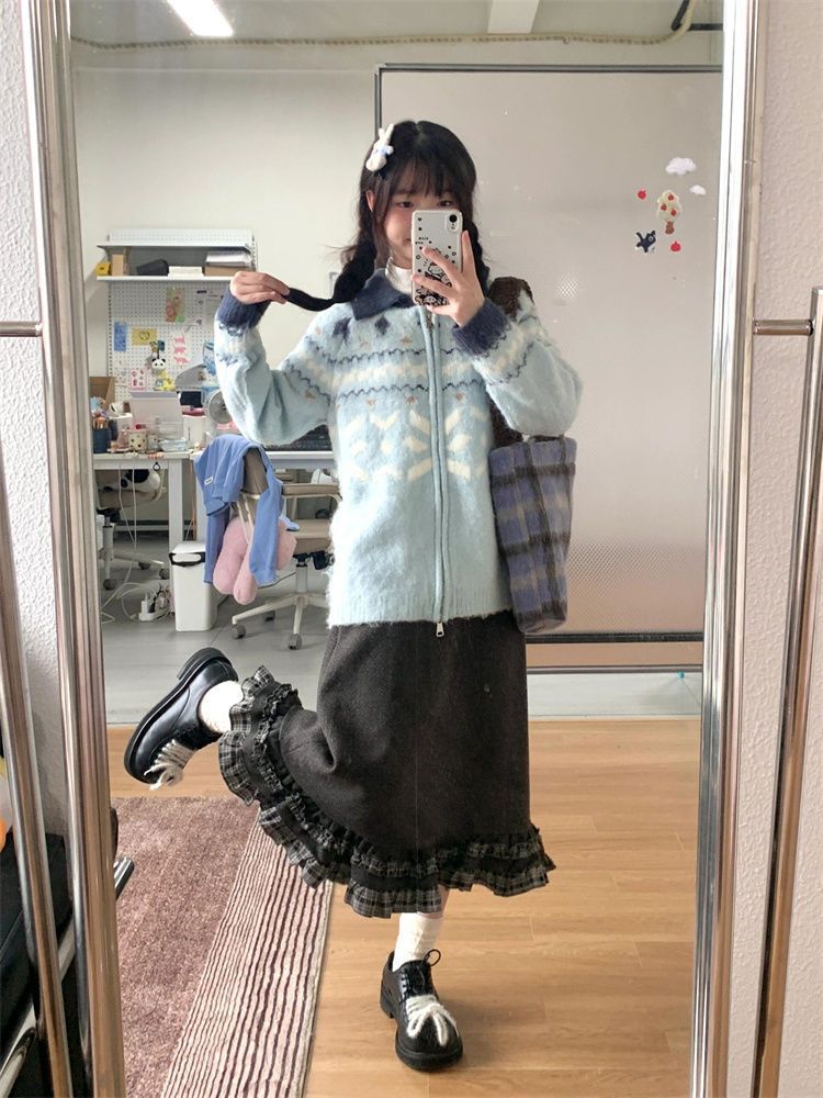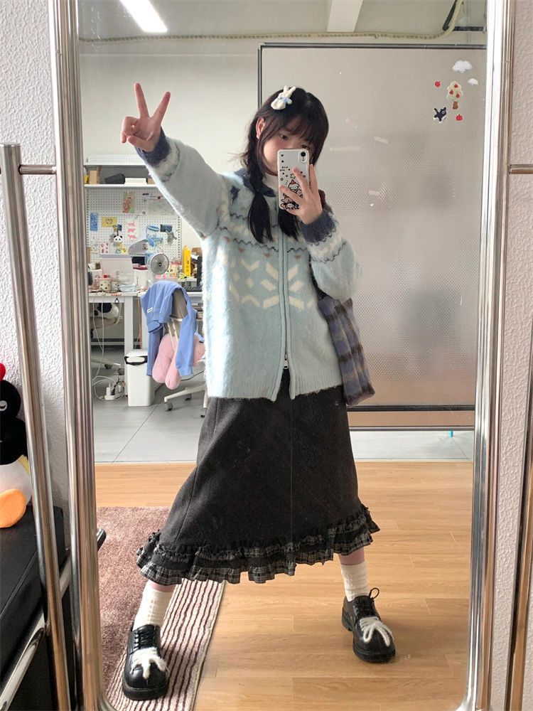 かわいい少女フェア島ジャカードセーターの女性秋冬のゆるい怠惰なニットカーディガンの潮