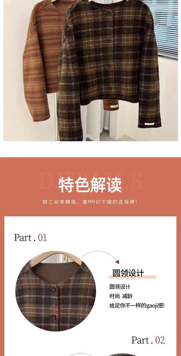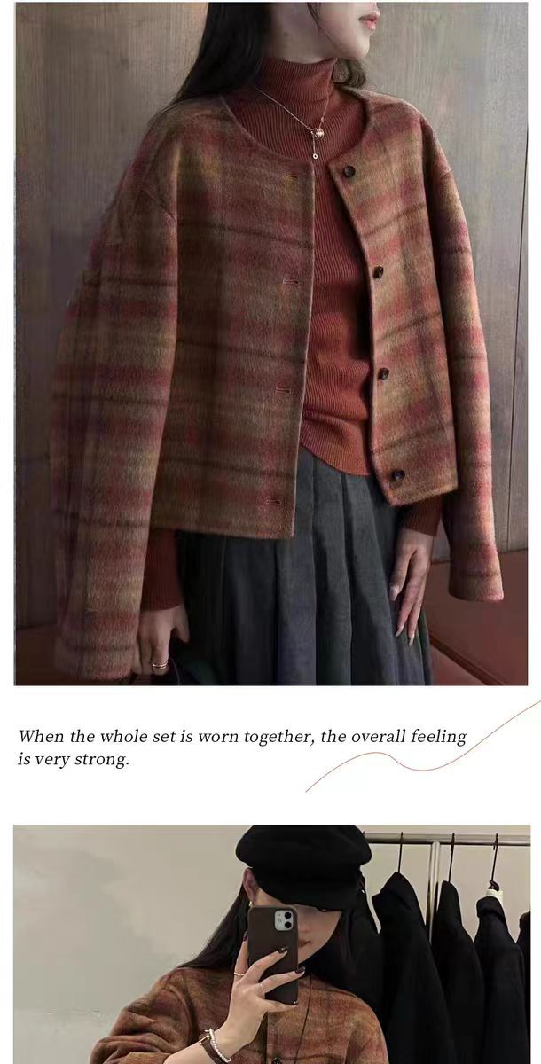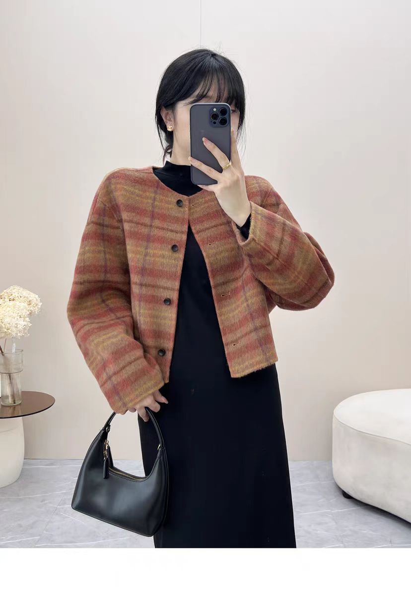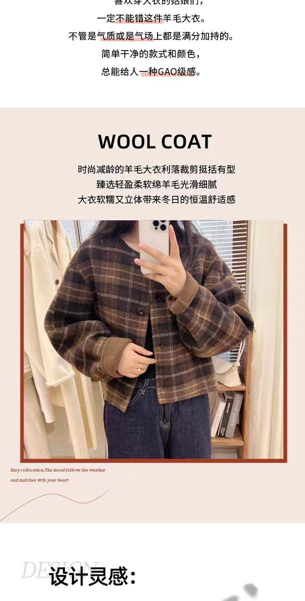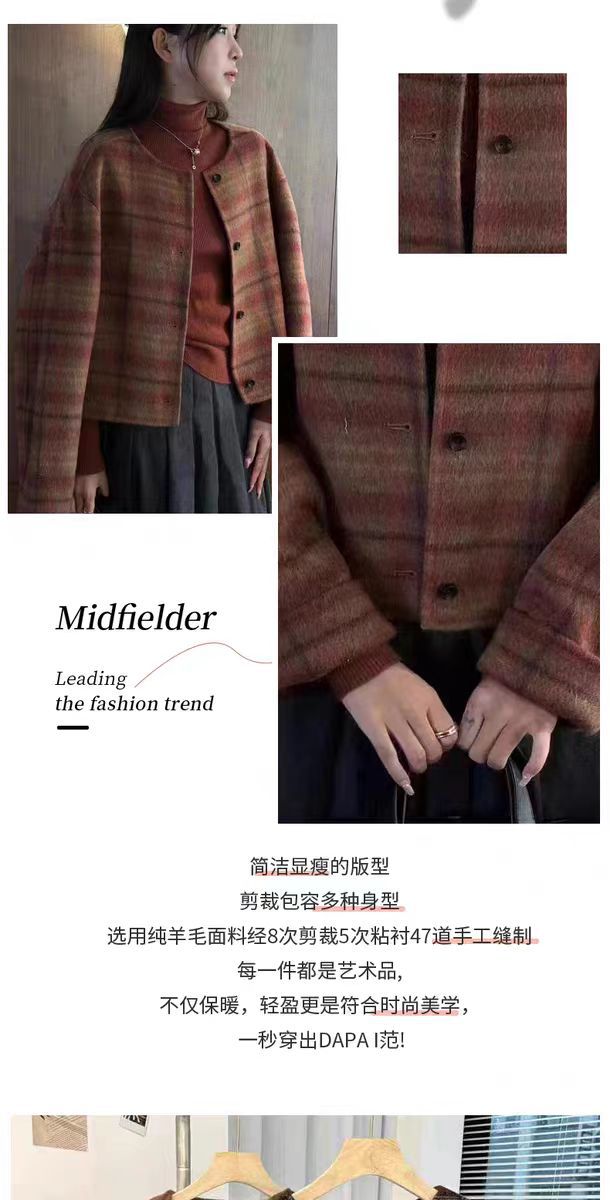 厂家直销韩系格子双面羊毛大衣短款2025新款宽松显瘦毛呢外套女