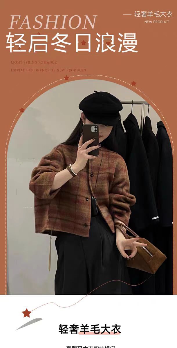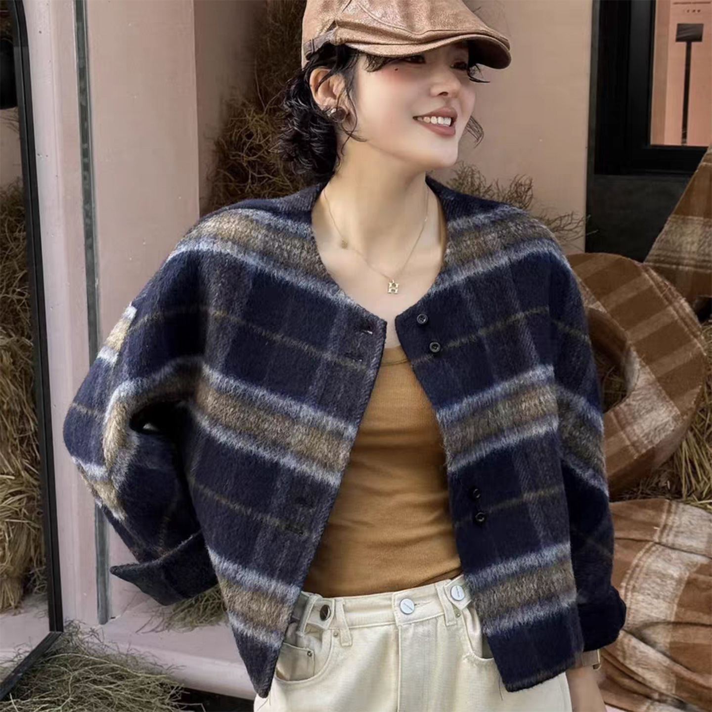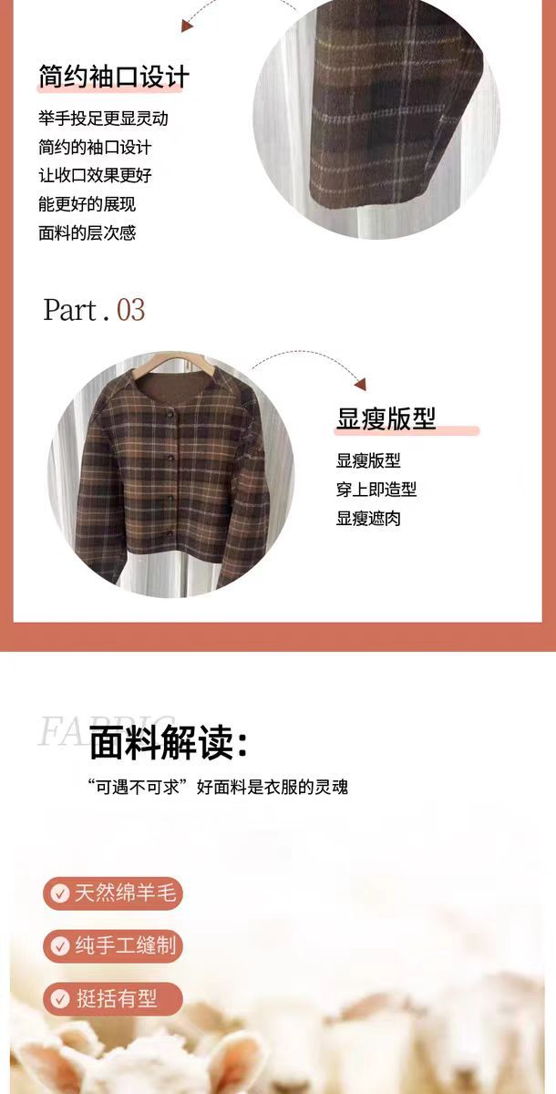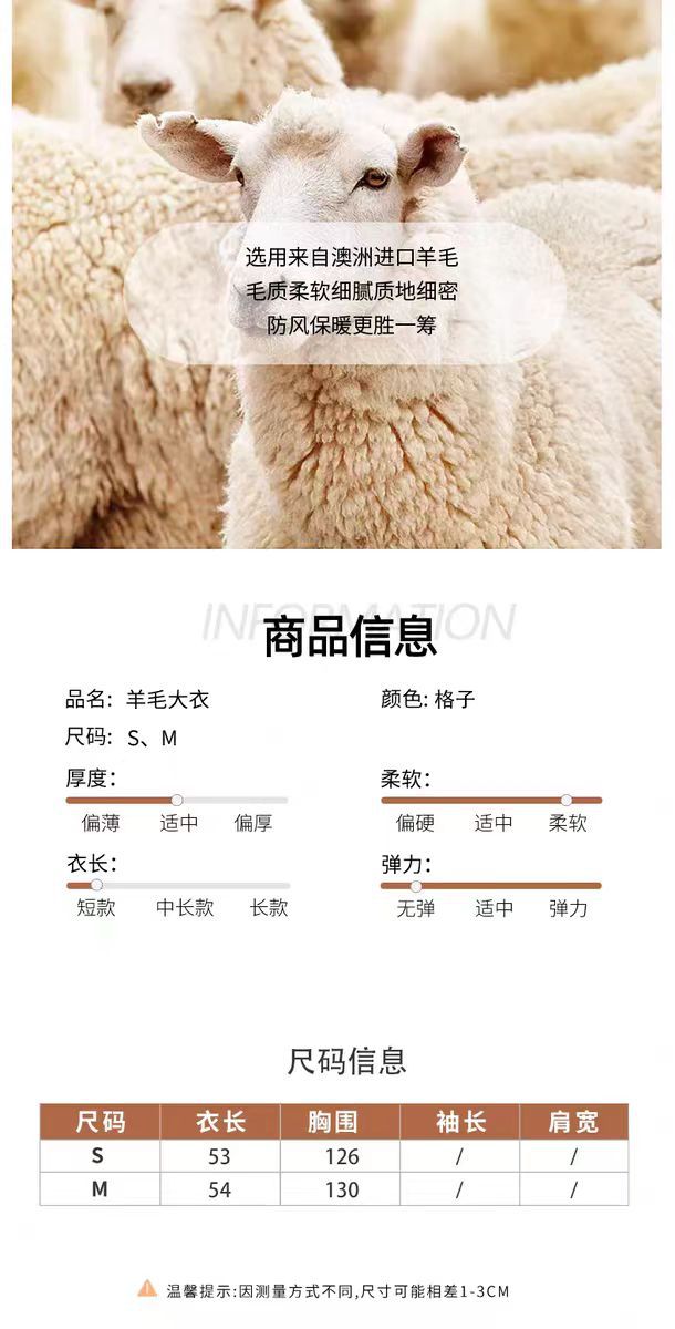 厂家直销韩系格子双面羊毛大衣短款2025新款宽松显瘦毛呢外套女