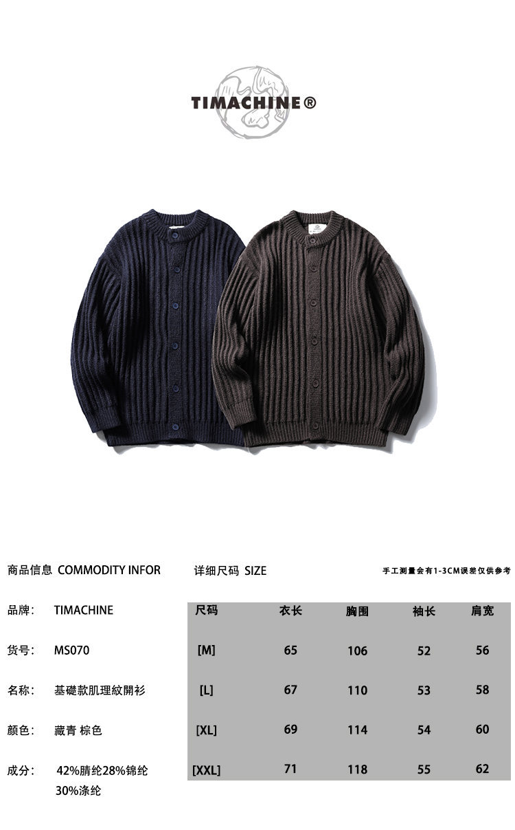北界男装 美式潮牌2025秋季新款复古开衫毛衣男纯色针织线衫外套
