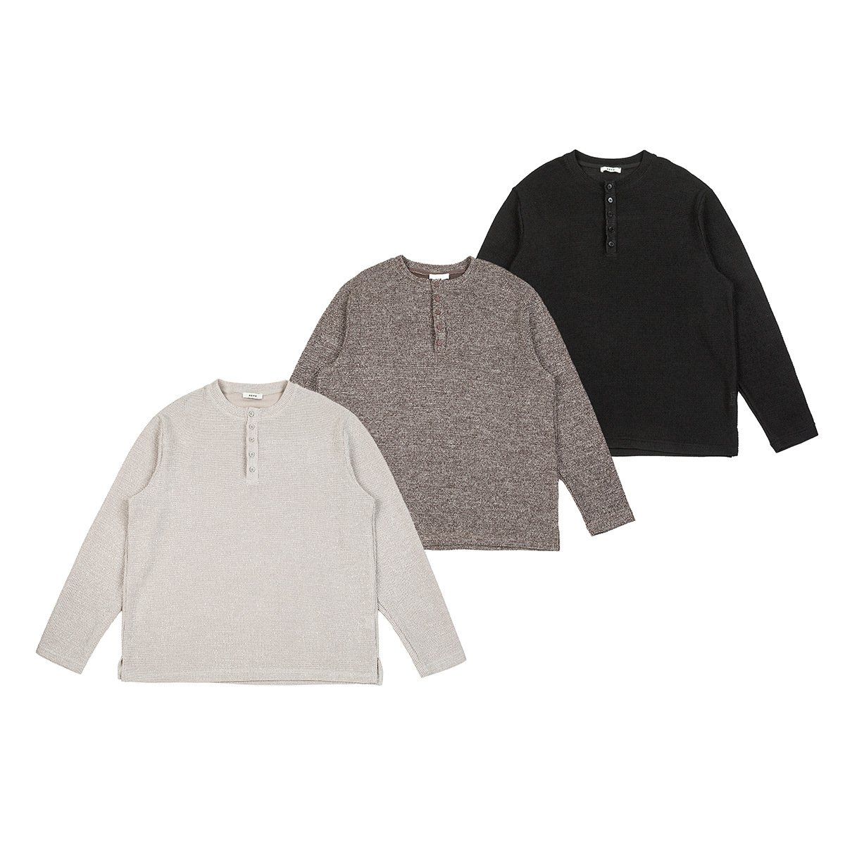 北界男装 美式潮牌2025秋季新款亨利领长袖T恤男肌理感打底衫体恤