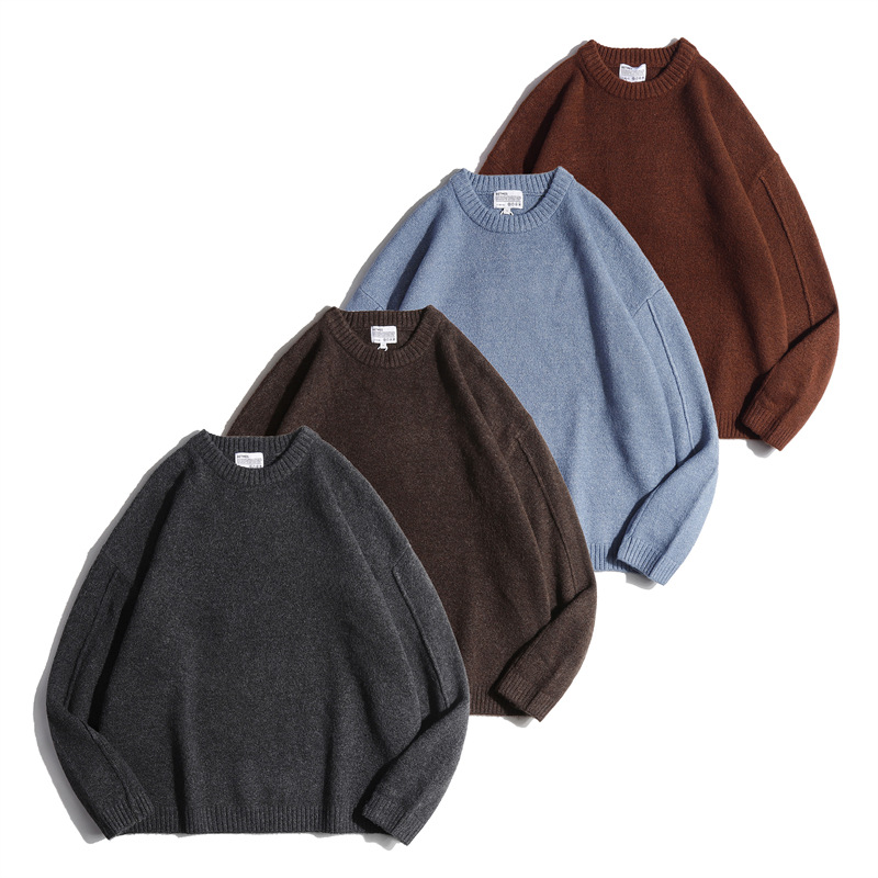 北界メンズウェア アメリカンスタイルブランド 2025年冬新作 無地ラウンドネックセーター ゆったりニット カップル向けトップス