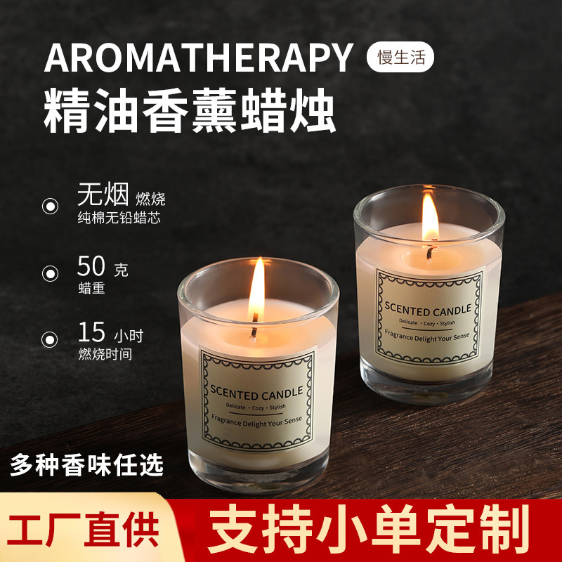 アロマキャンドルギフト、ガラス製、手作り大豆ワックス、エッセンシャルオイル、無煙、香り付き装飾品、卸売、ロマンチックな雰囲気